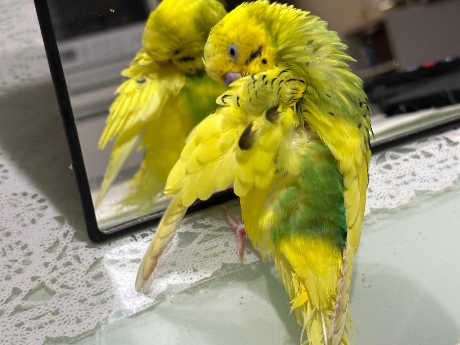 尻尾が短い黄色と緑のセキセイインコ探してます