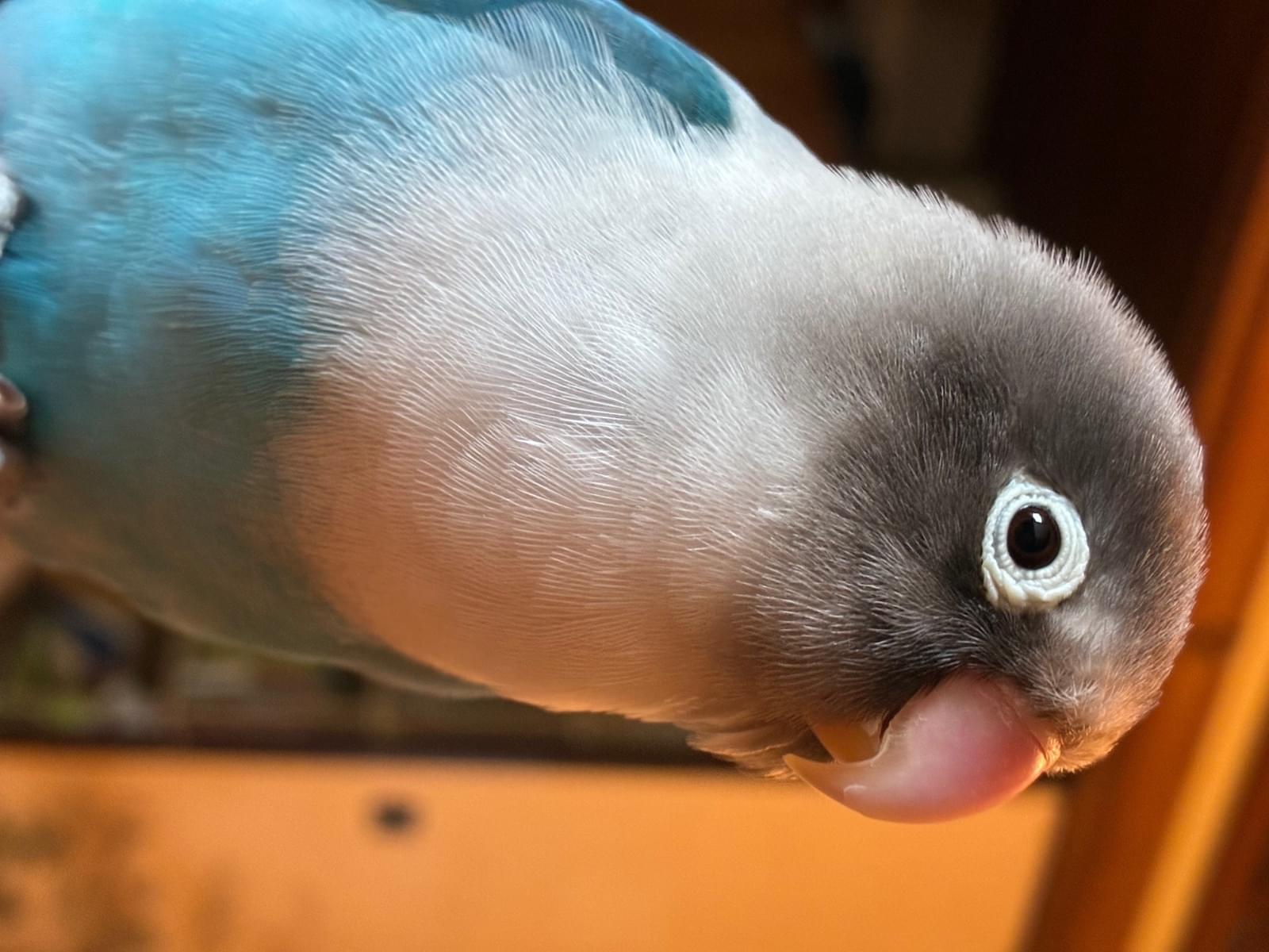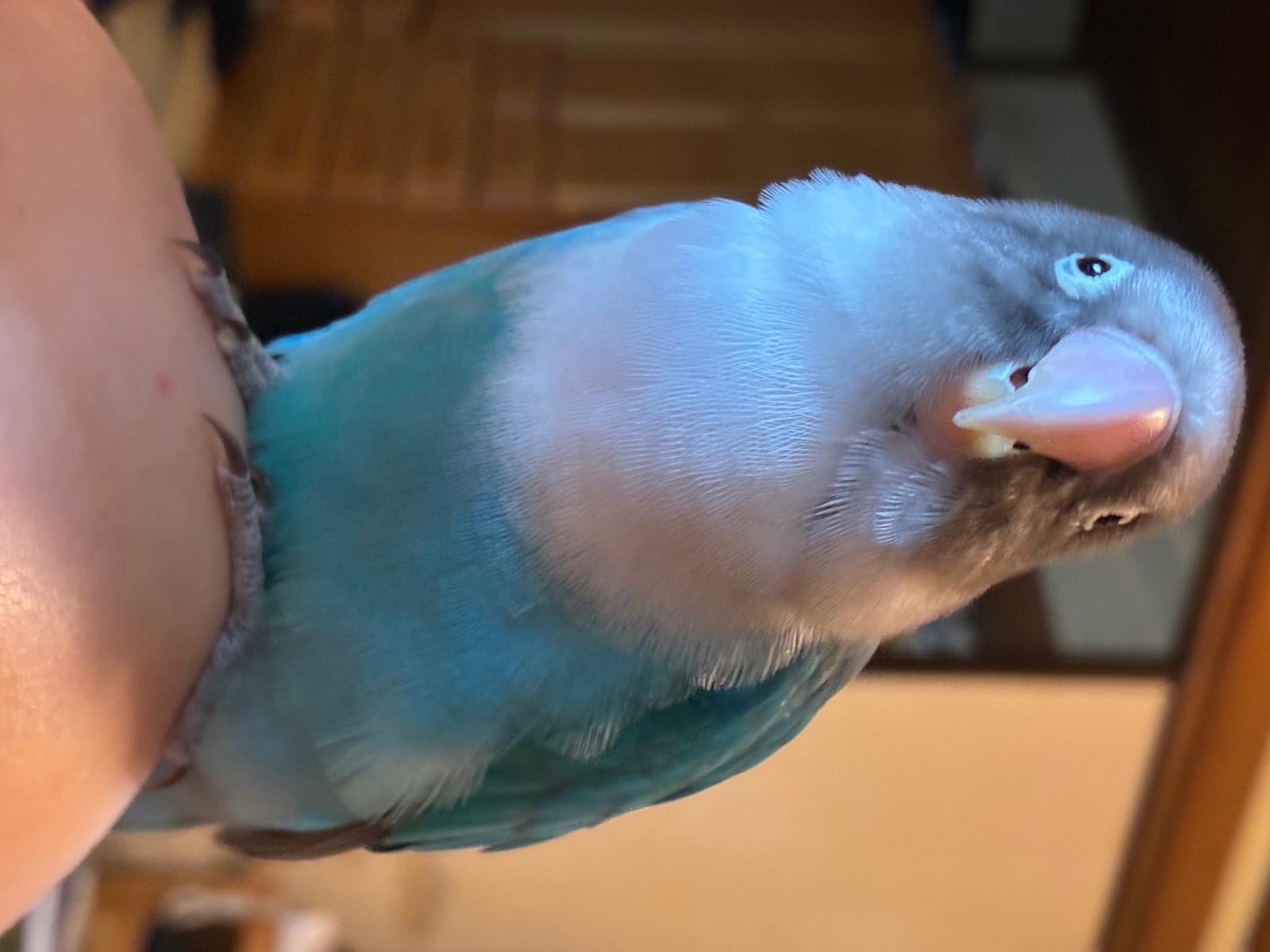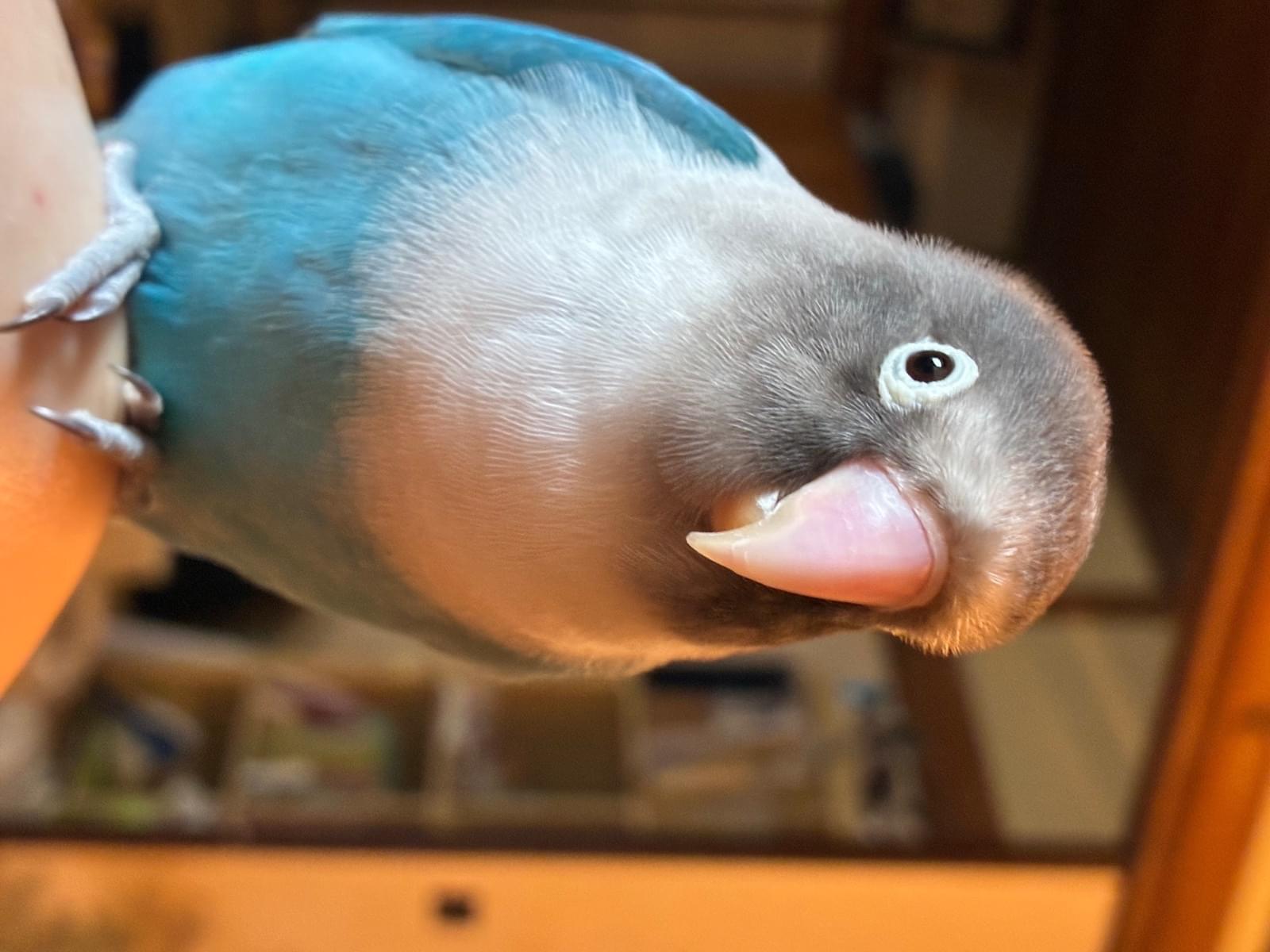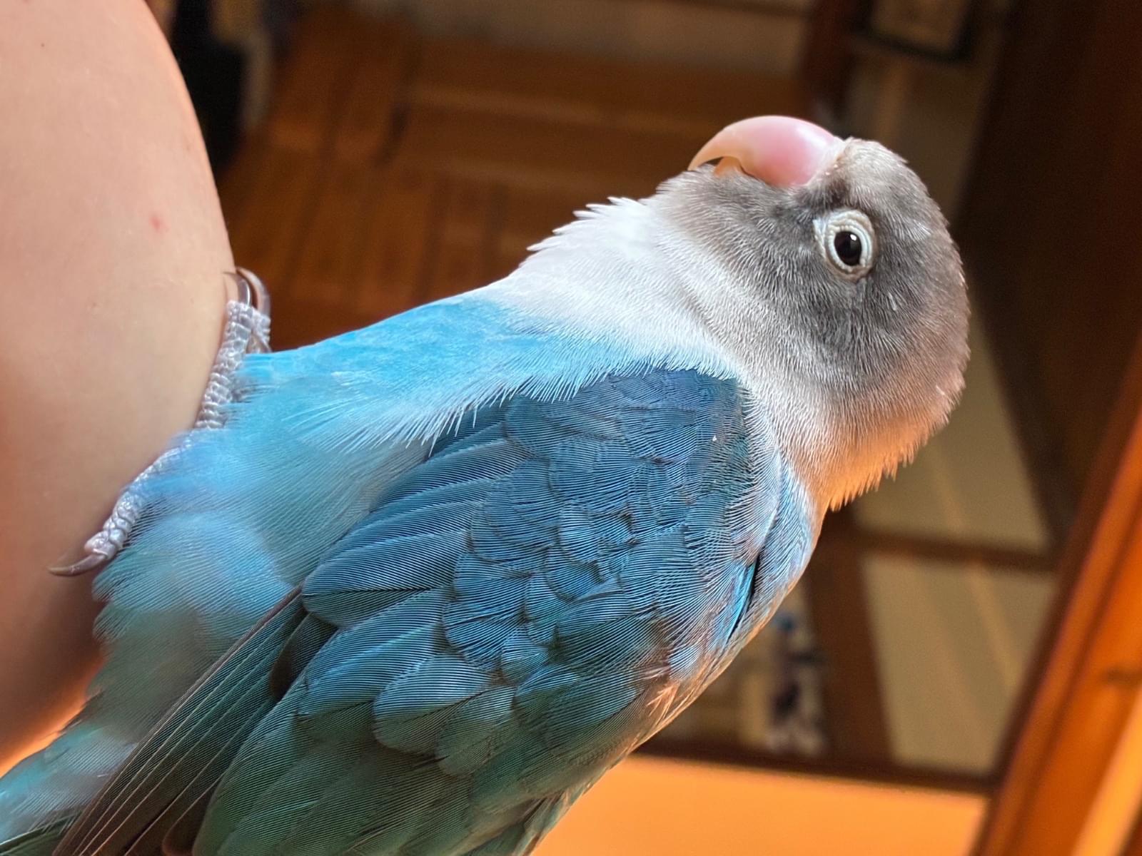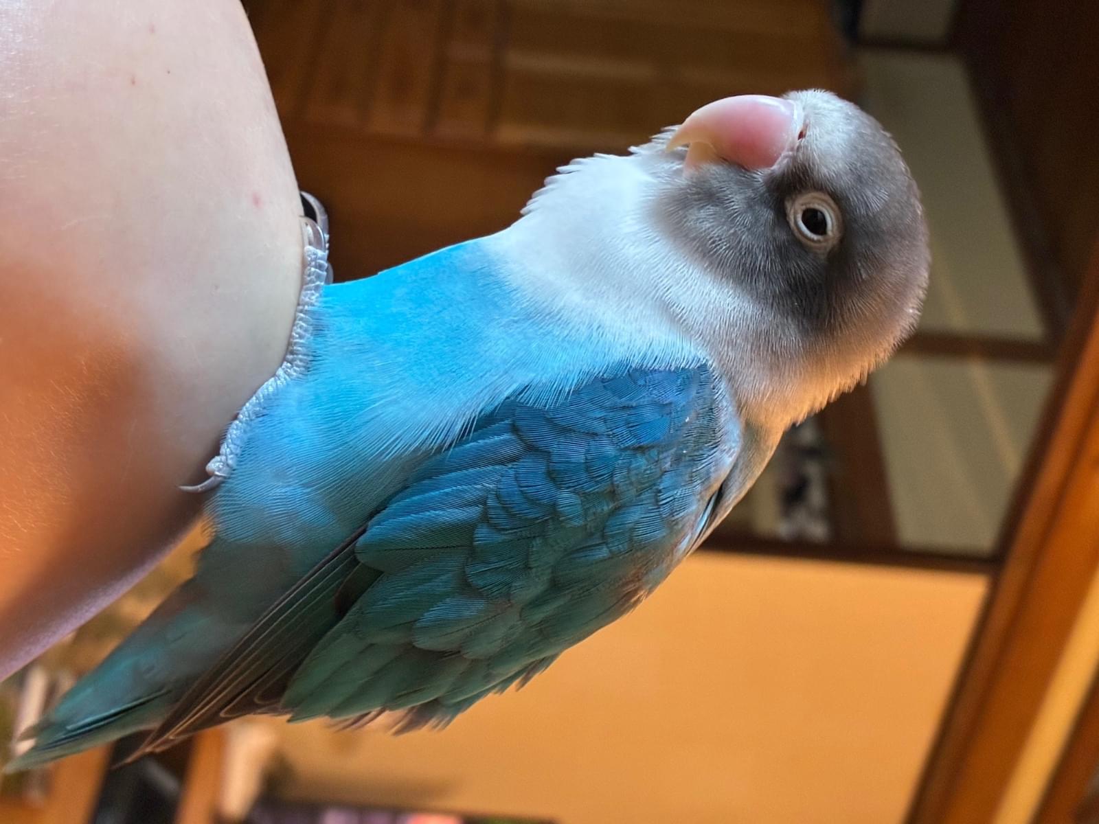 頭がグレー首ら辺が白く体が青いボタンインコを探しています