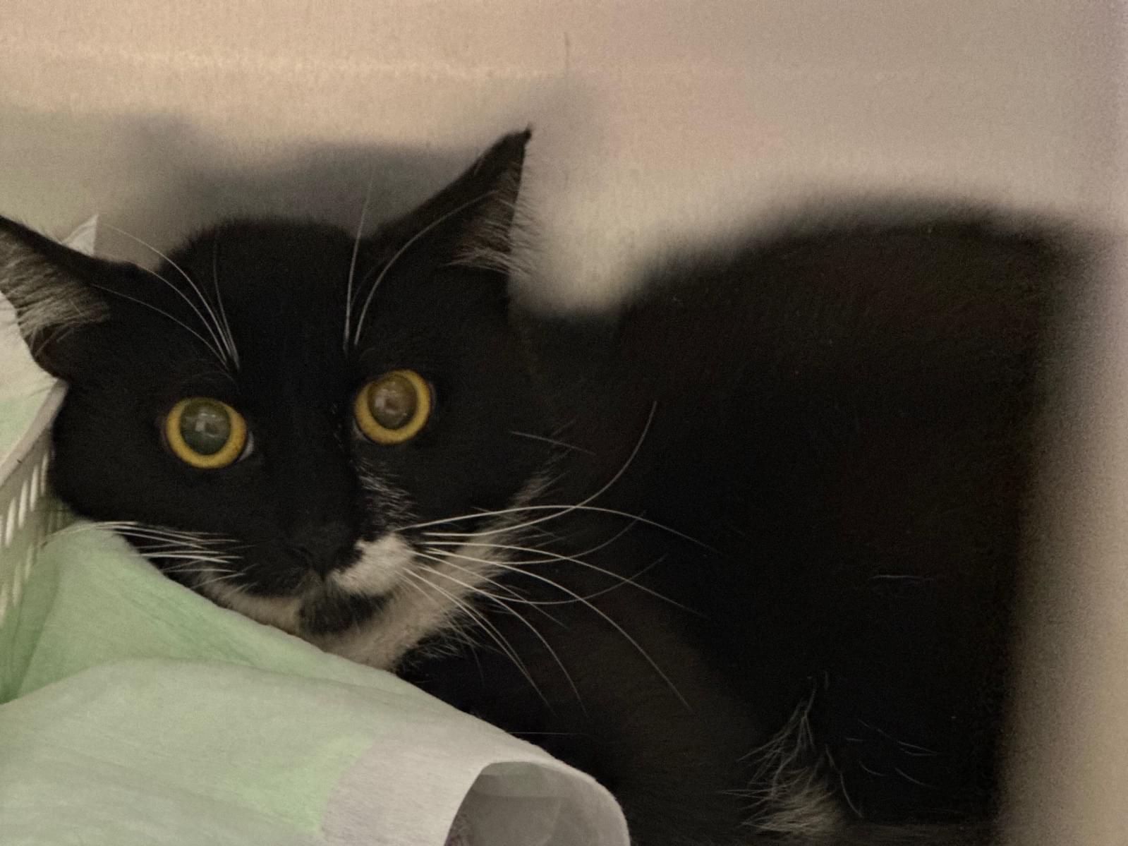 車にぶつかったと思われる道路で動けなく、横たわった状態の黒猫ちゃんを保護しました。