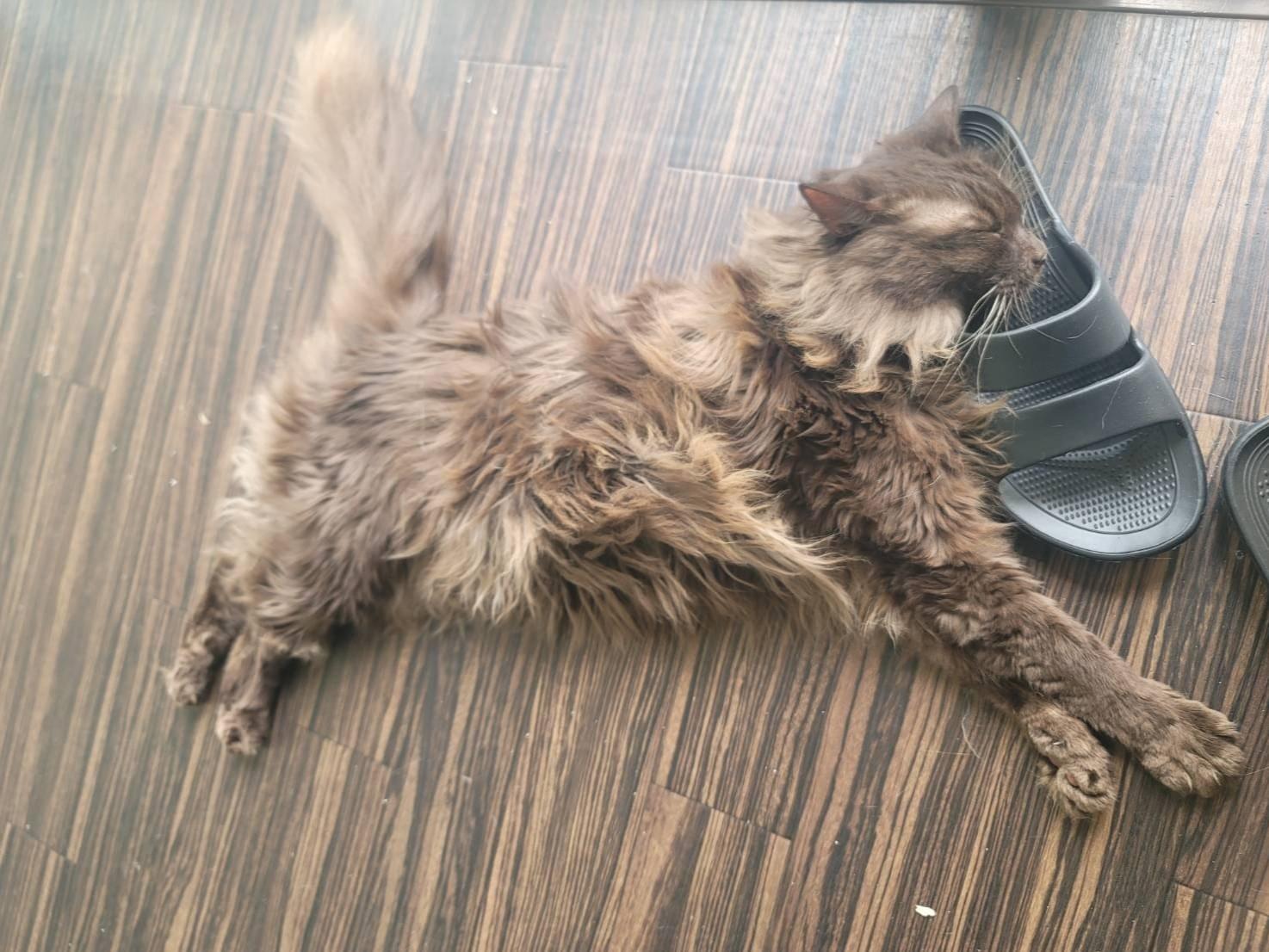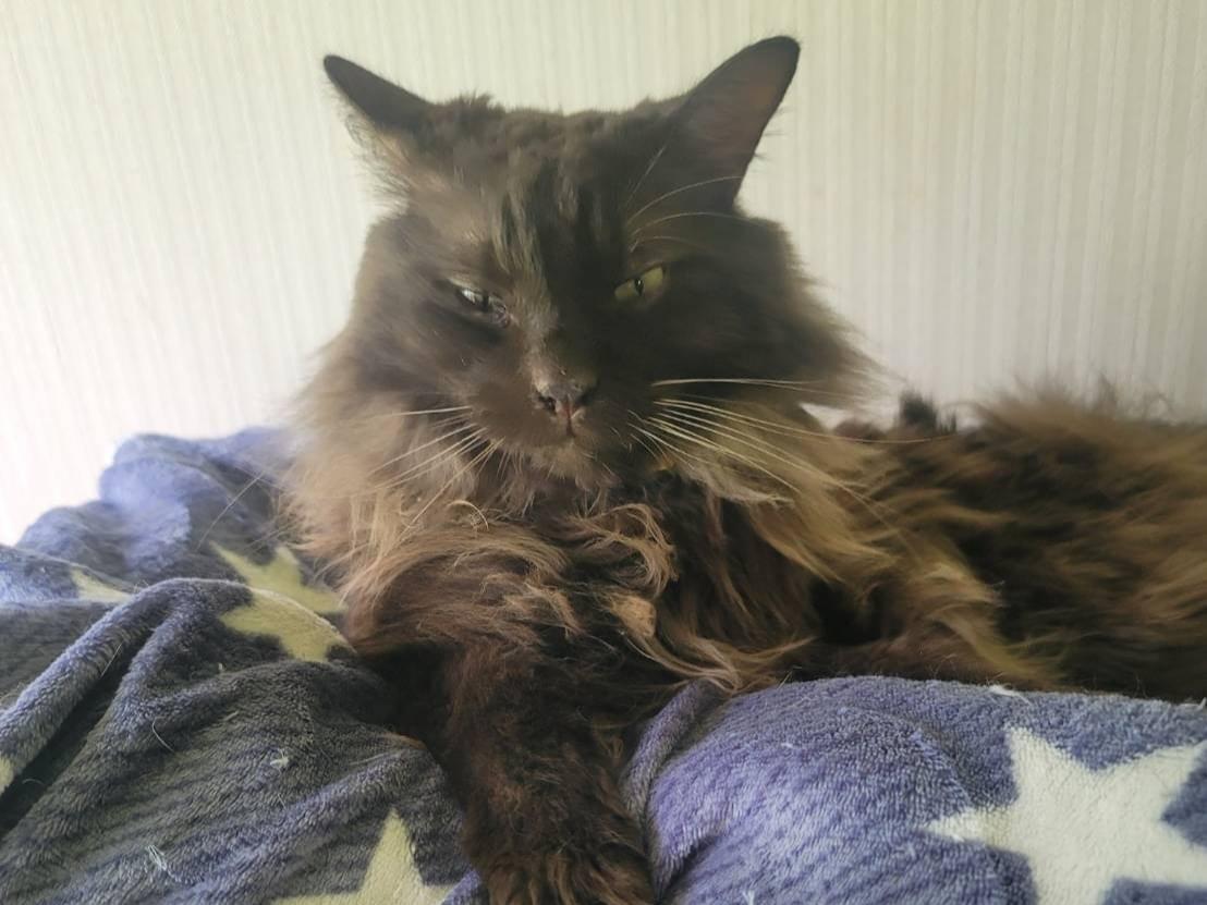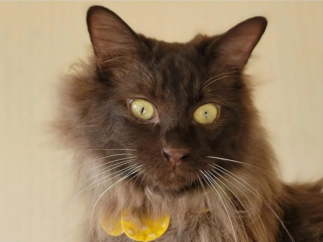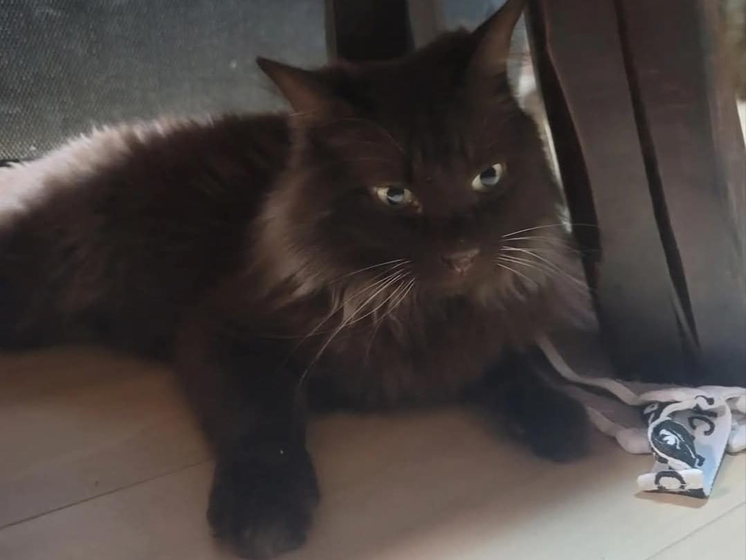 焦げ茶色の長毛猫を探しています。シッポの毛足が長いです。