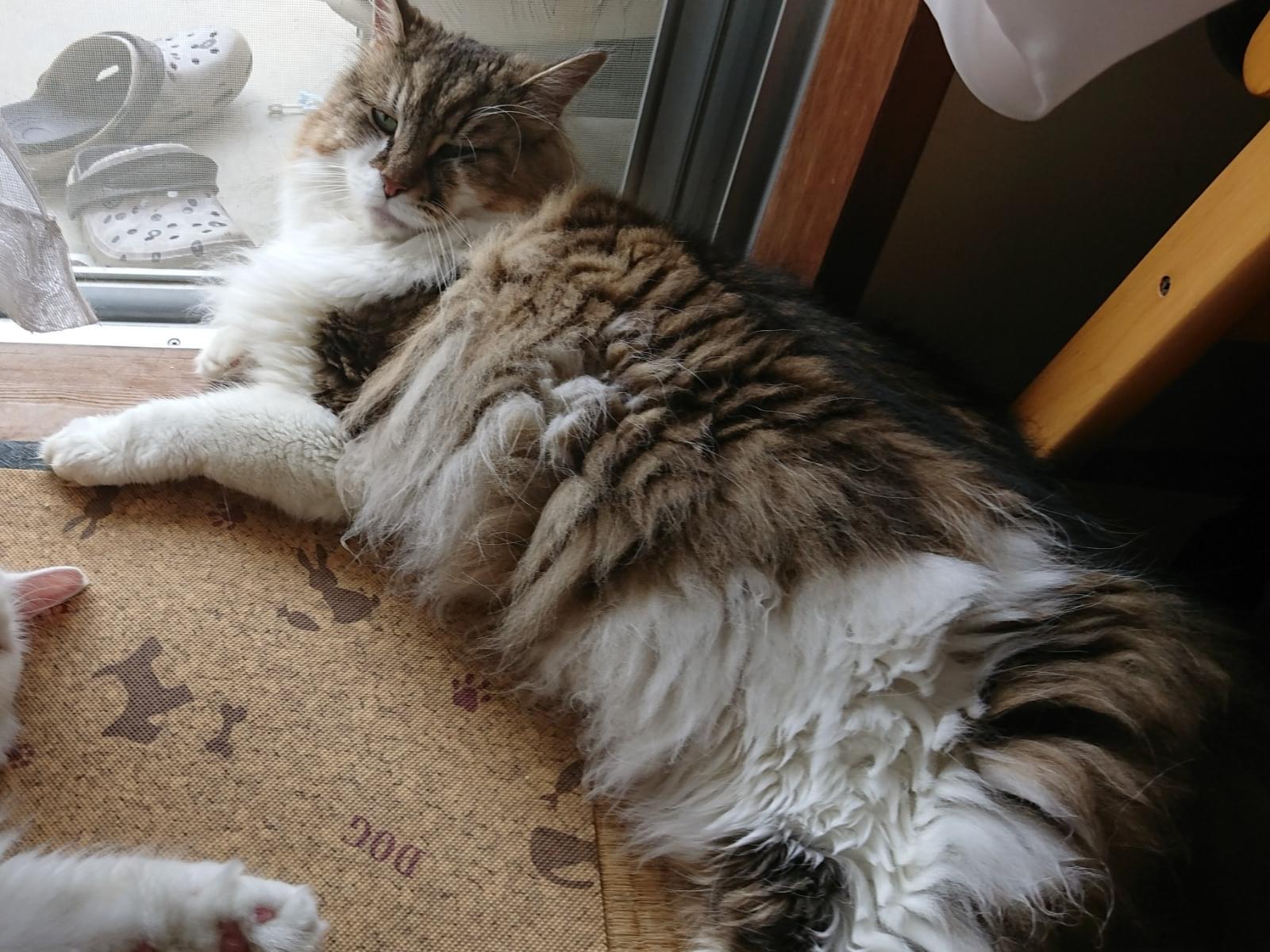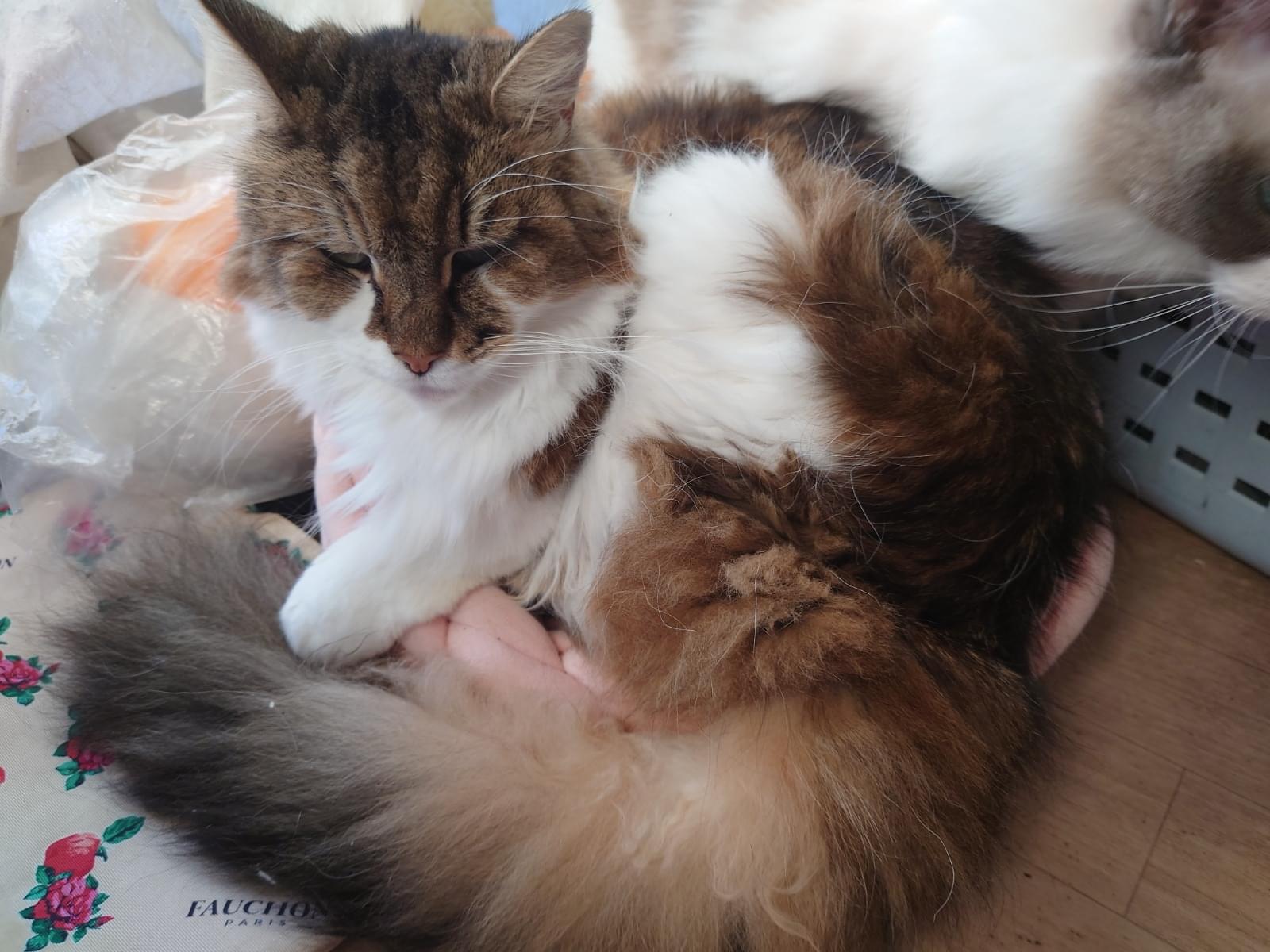 性格はかなりおっとりで人懐っこい性格をしています。大型の猫なのですが、老猫である為抱っこするとかなり軽量です。尻尾はふさふさで長いです。