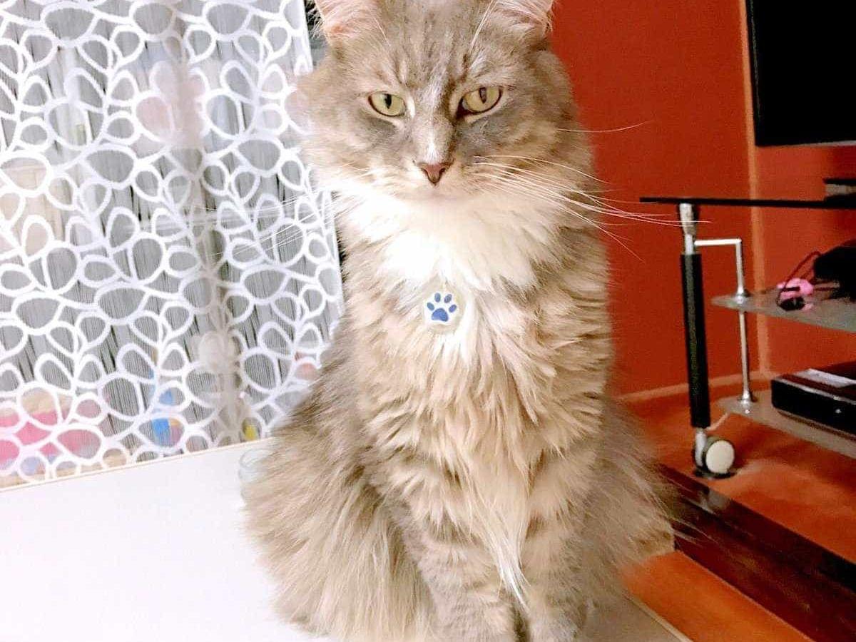 ・シルバーのゴム製首輪、名前と連絡先が書かれた丸いプレート付き(外れているかもしれません)