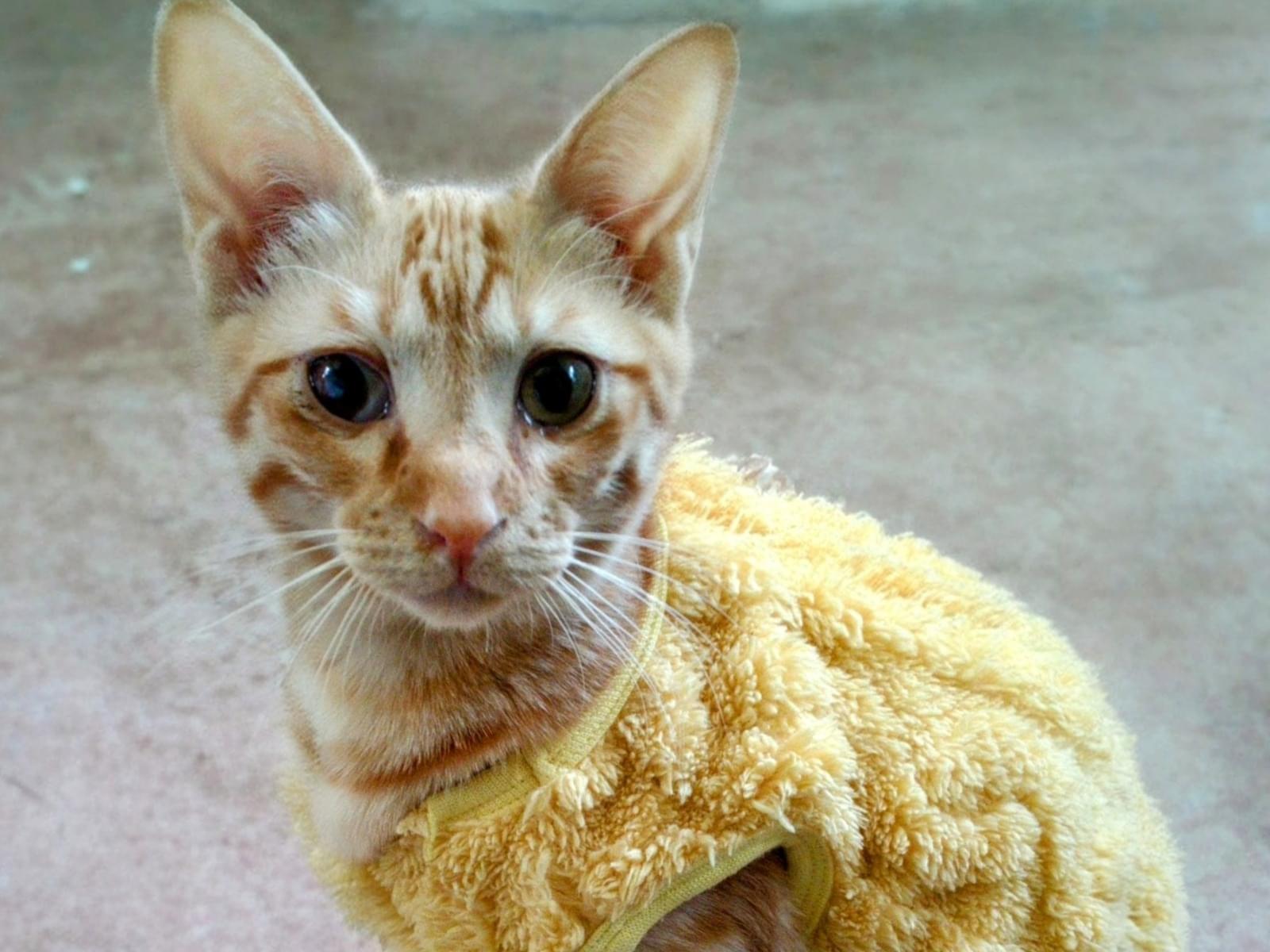 日中お天気の良い日 お昼から夕方の間にいなくなりました 人懐っこいです ちゃとら子猫オス 生後7か月 右目の中央が白い白濁 その他健康 よく鳴きます 宜しくお願いします