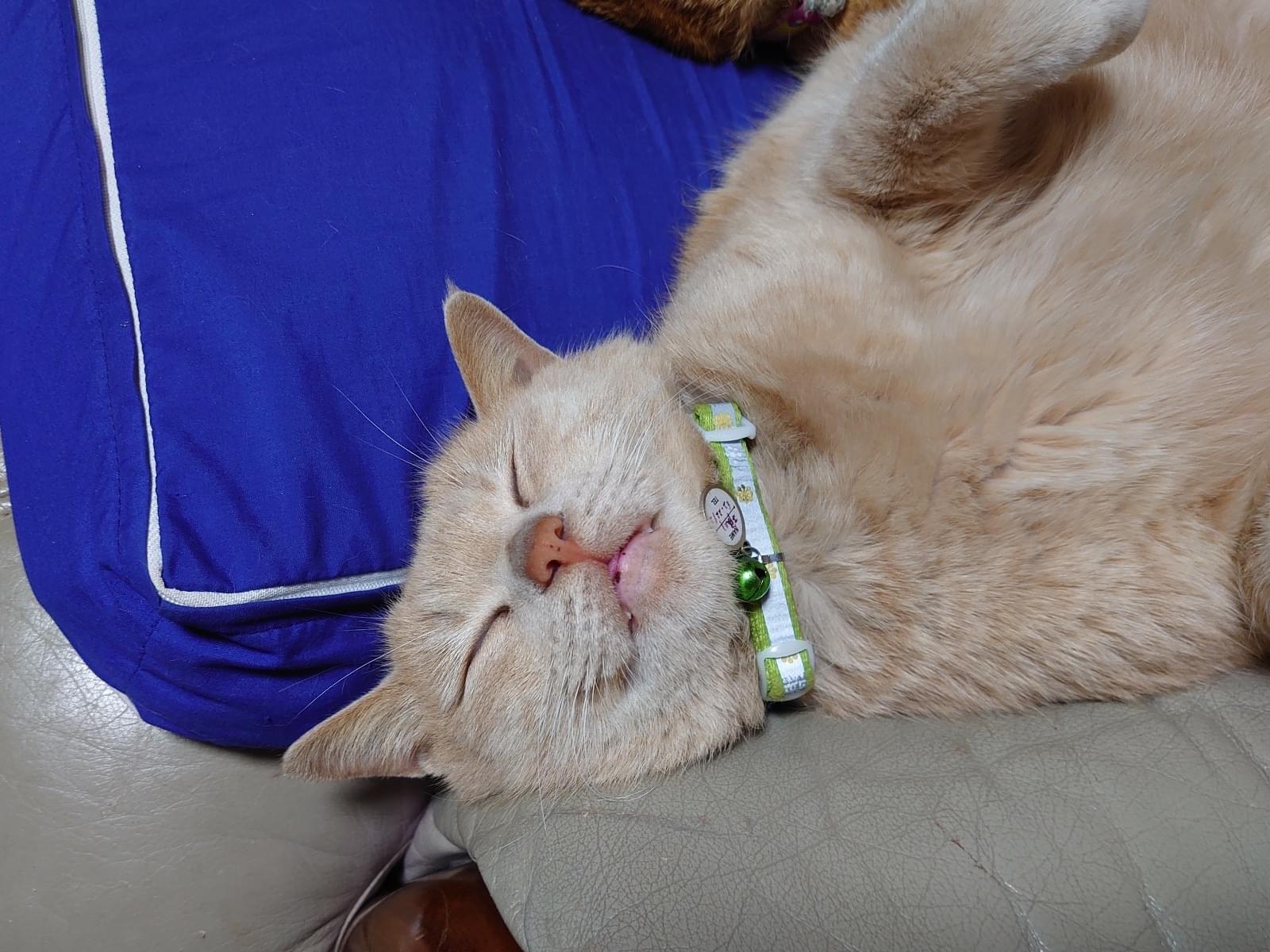 薄い緑の鈴付き首輪をしてますが、 外れてるかもしれません