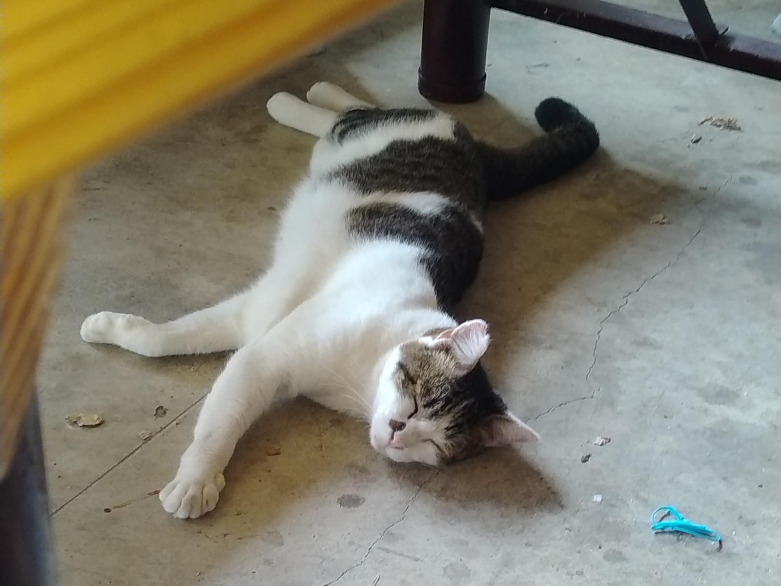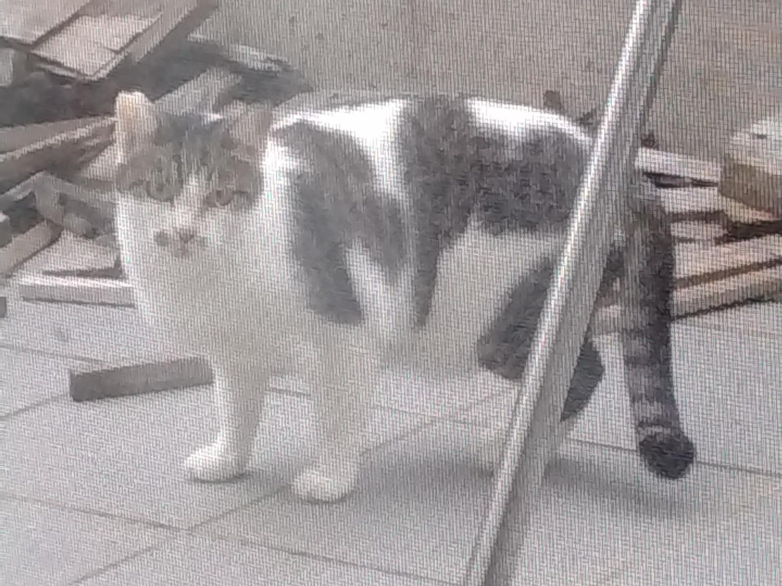 毎日餌を貰いに来る、スリスリするにもかかわらず、病院玄関前で抱きかかえて入ろうかとその瞬間暴れて脱走。