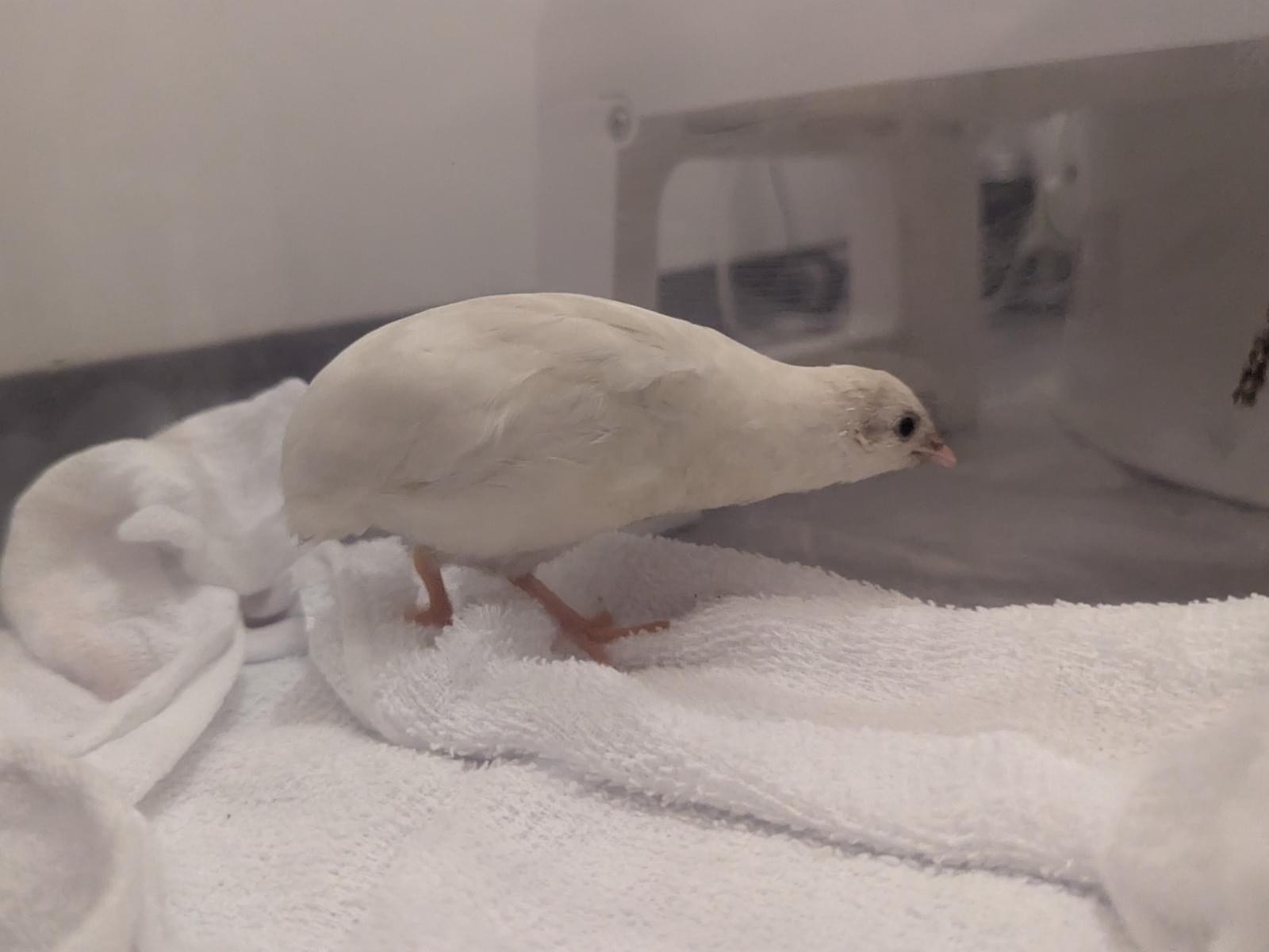 白いヒメウズラを保護してます。