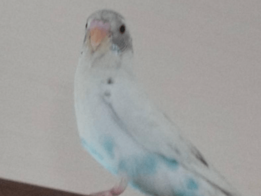 背中は白色(黒い斑点あり)、おなかは水色です。おしゃべりはできません。鈴が好きです。