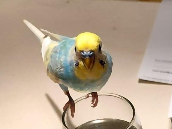 スカイブルーのセキセイインコ です。黄色い頭をしていて胸元に白い雲が浮かんでいるような模様がついてます。たっちゃんはとか たっちゃんのお家はとかお喋りします。普段は 沼津に住んでいるのですが実家に帰省をするため 愛知県長久手市に連れてきました。実家に来て4日目のお昼頃、普段一緒に暮らしていない父が庭の草取りをするため 玄関の出入りをしている時に外に出て行った可能性があります。私は昼ご飯を作っているのに夢中になっていて目を離してしまいました。すぐに探しに行ったのですが 目の前が公園になっており2時間以上 名前を呼びながら探しましたが見つかりません。近所に写真付きのチラシを作って配りました。警察に逸失物届けを出しました。