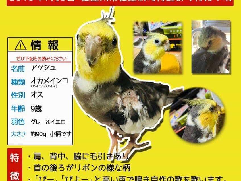 大阪府寝屋川市でオカメインコがいなくなりました