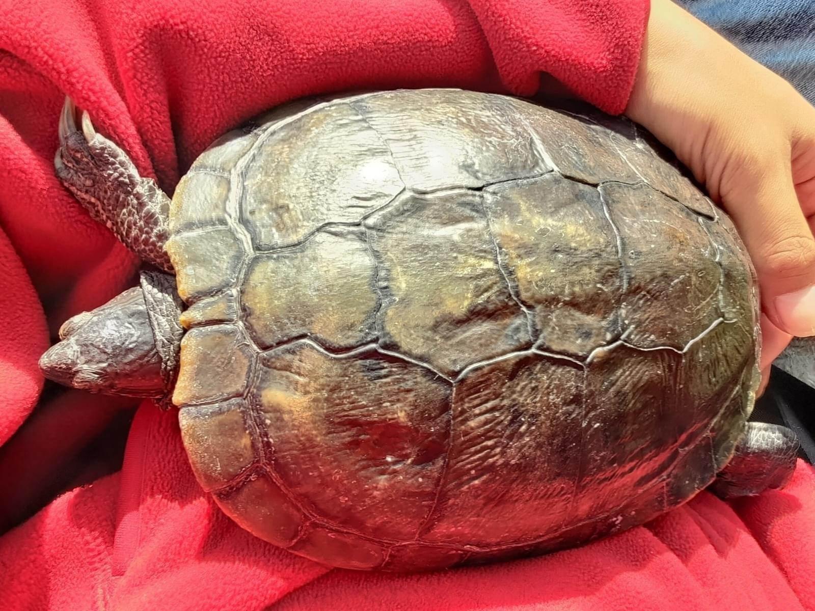 赤耳は薄れていて、後ろの甲羅の形が不均等な形をしてます。基本的に人懐っこいです。