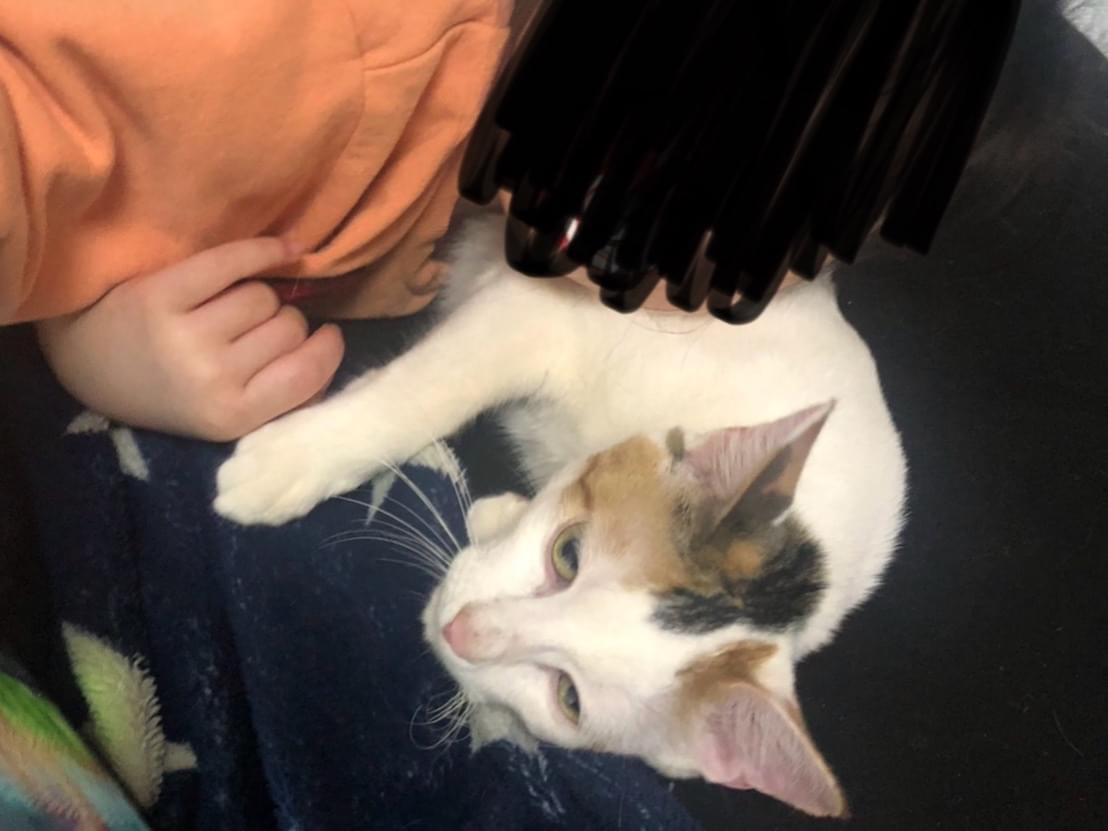 避妊手術未。ビビりな性格。困ったような顔してます。
