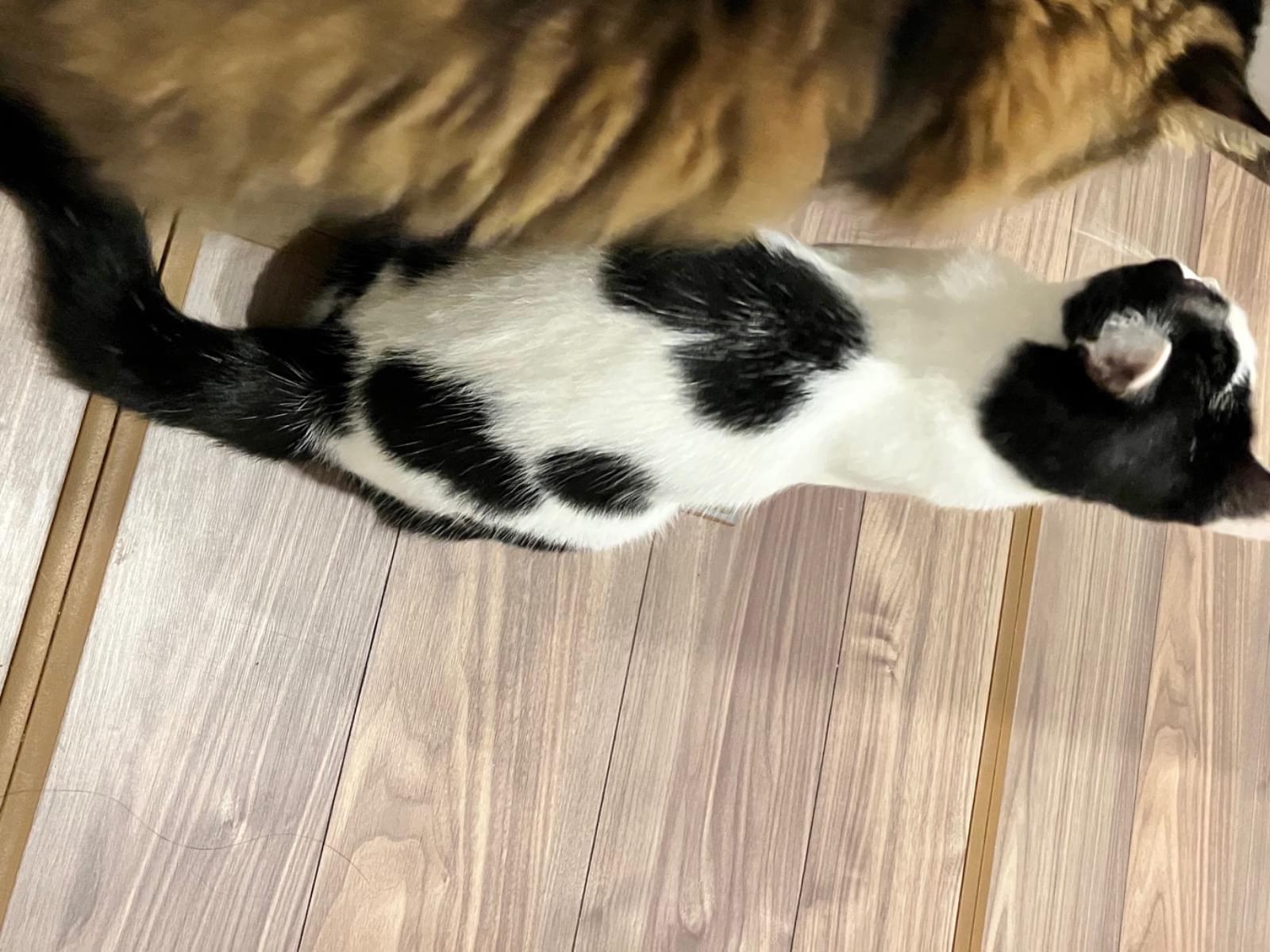 尻尾が中央くらいから90度ほどに折れているかぎしっぽです。見た目ではあまりわかりませんが、その先でも少し折れています。尻尾の色は黒。