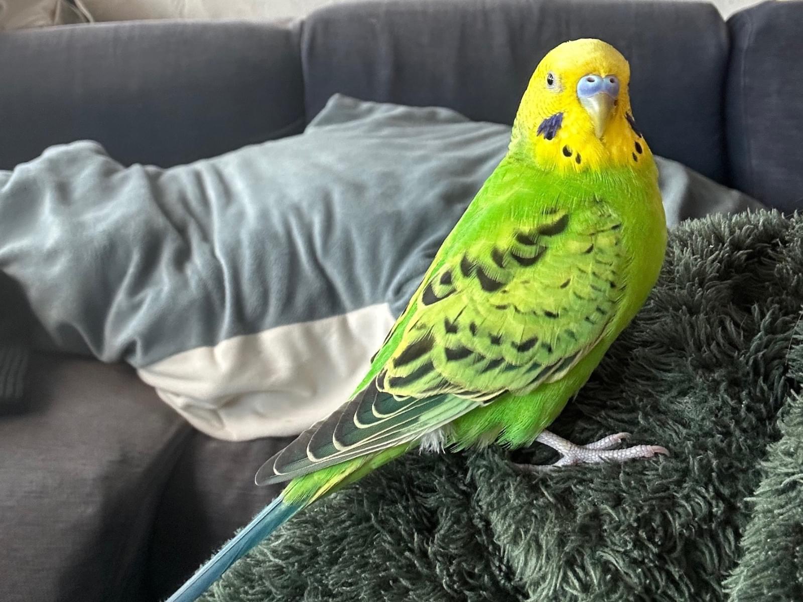 人に慣れています。触られるのが嫌で肩には乗ってきますが触ろうとすると嫌がります。