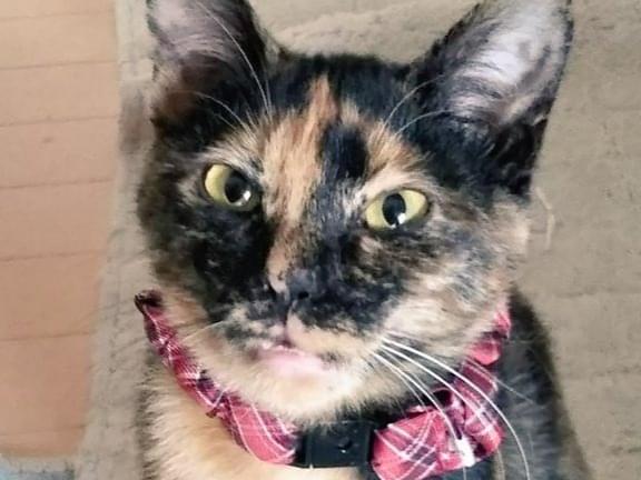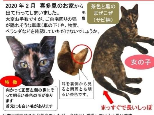 赤いリボンの着いた茶色と黒のサビ猫を探してます