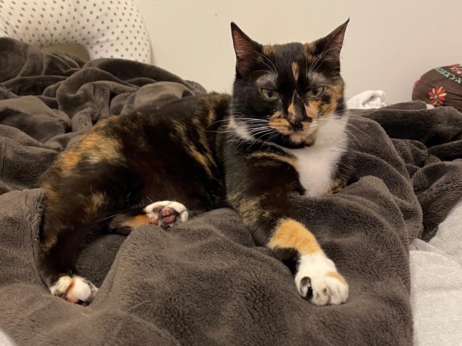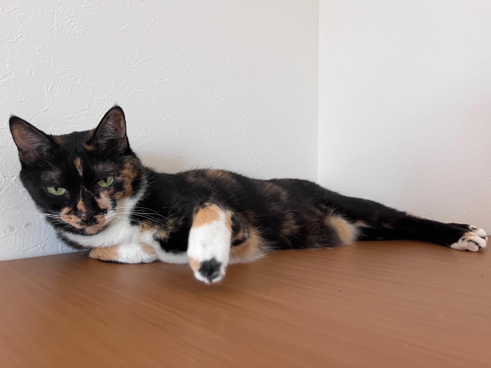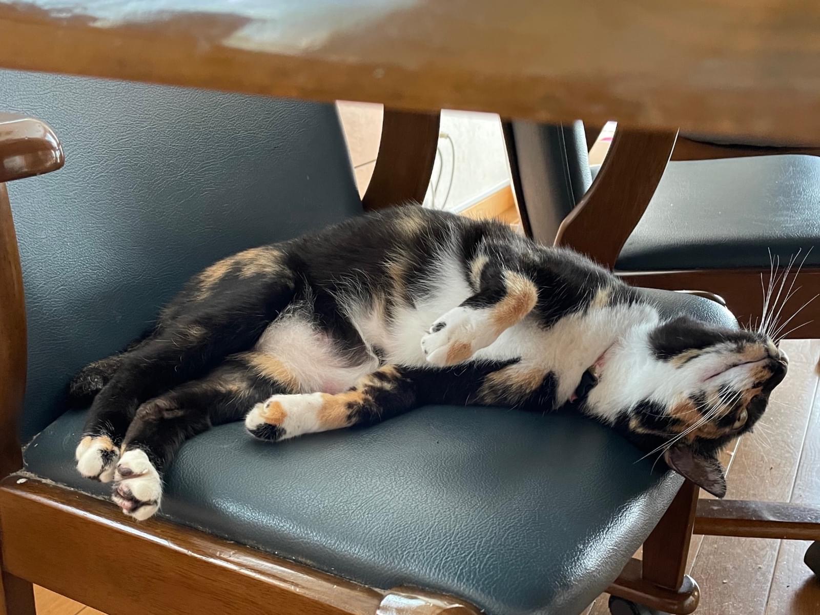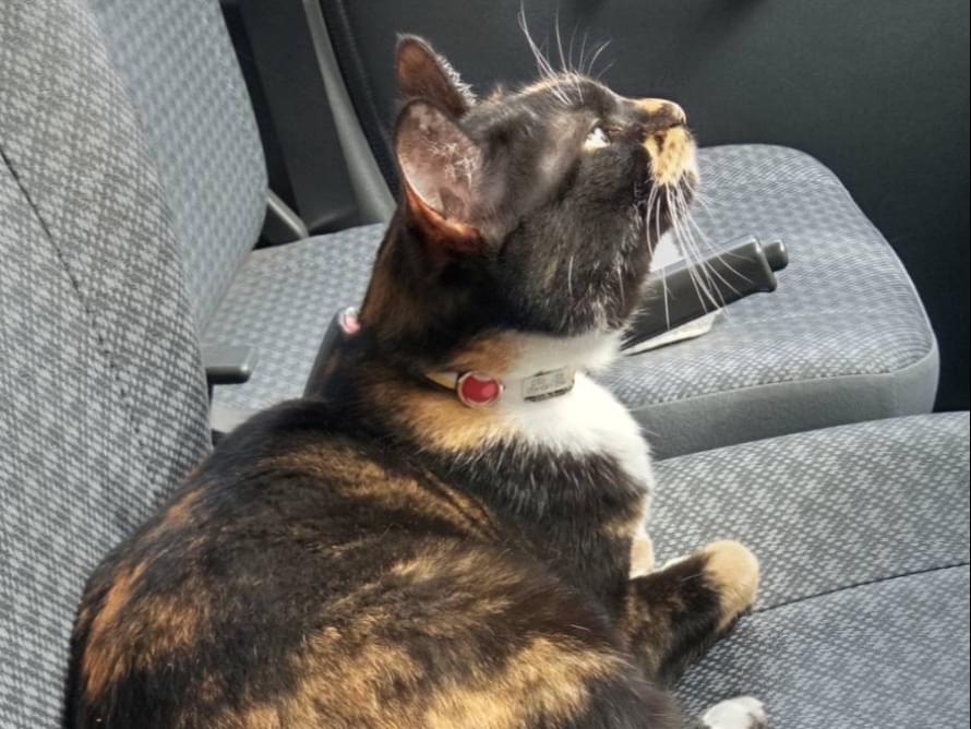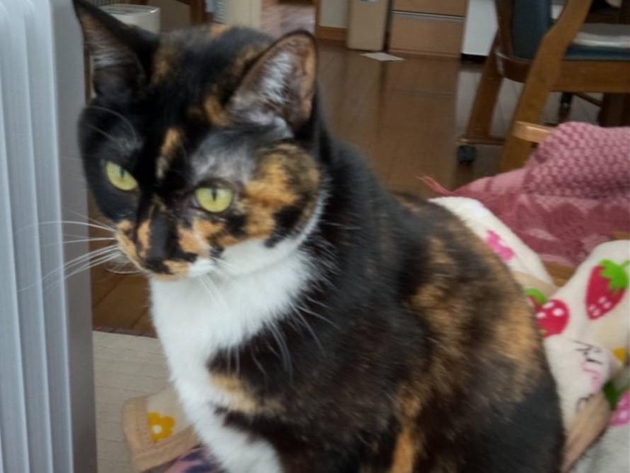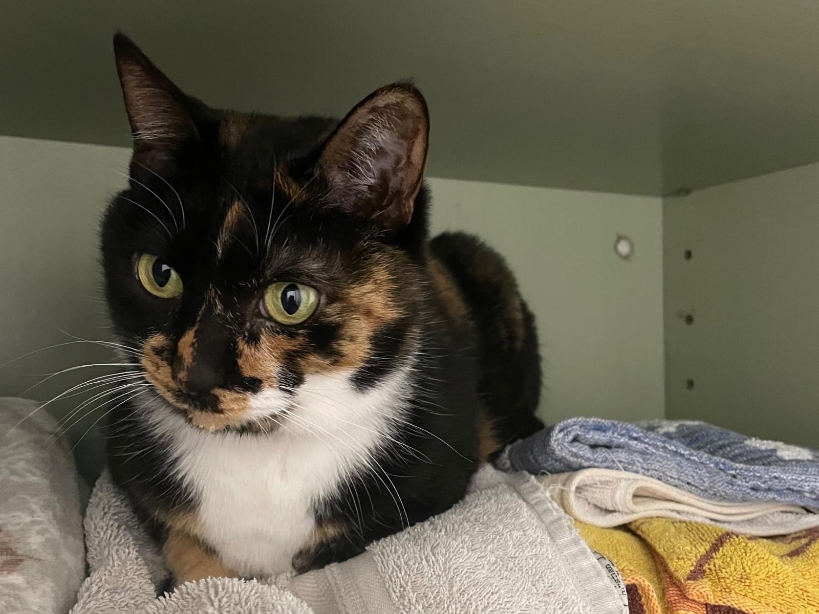 お腹白め、背中はサビ柄、首輪なし、マイクロチップ有り、声は高めです。