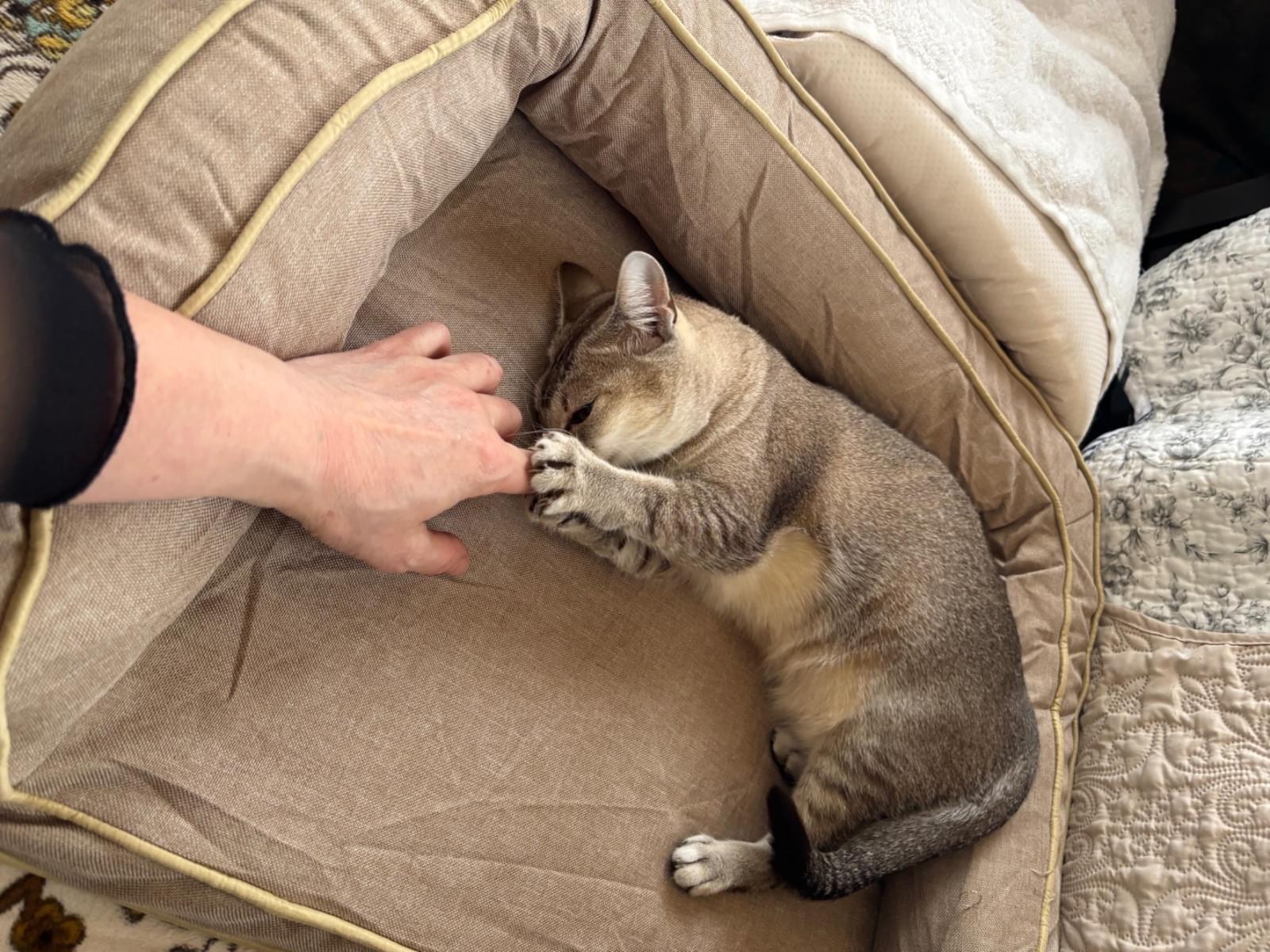 鳴き声は小さくほとんど泣かない。すばしっこいがすごく人懐っこくチョロと呼んだら鈴の音で飛んでくる。後ろ右足が少し曲がっている。21日夜いえのなかにいたはずがどこにもいなくなった。外に出たことのない女の子。ものすごく心配しています
