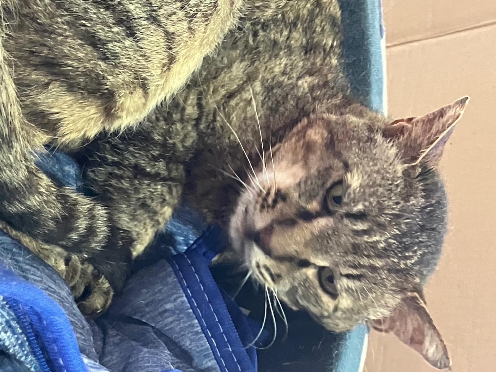 2024年6月頃に、放浪生活が相当長そうな汚れてガリガリのキジトラ(雄)が現れました。