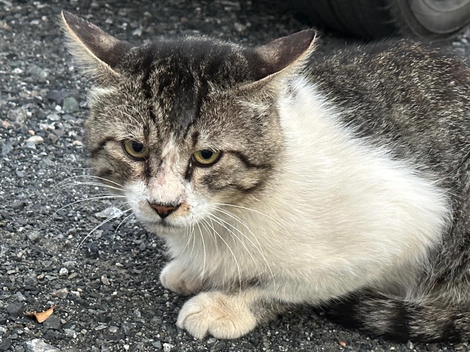 近寄らせてくれず、カリカリを置いて離れたらゆっくりペースで食べていました