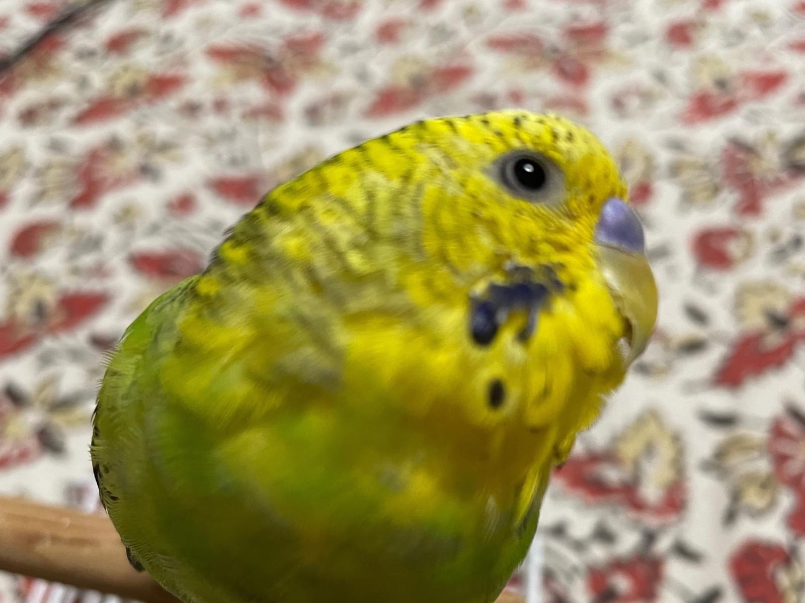 くちばしの上がブルーで、指を出すと乗ってきます!