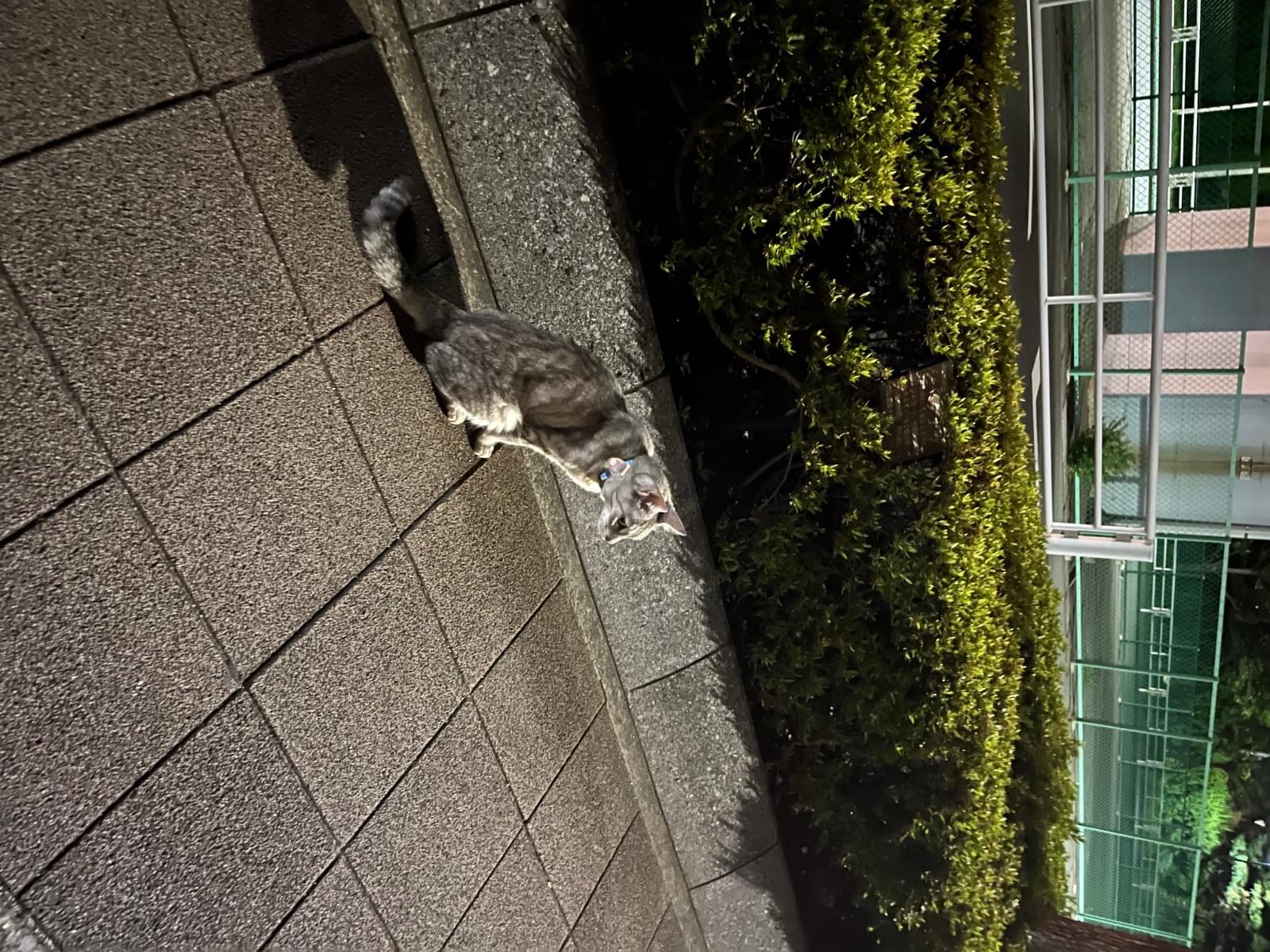 市川市行徳の七中の近くで首輪を付けたネコさんを見かけました