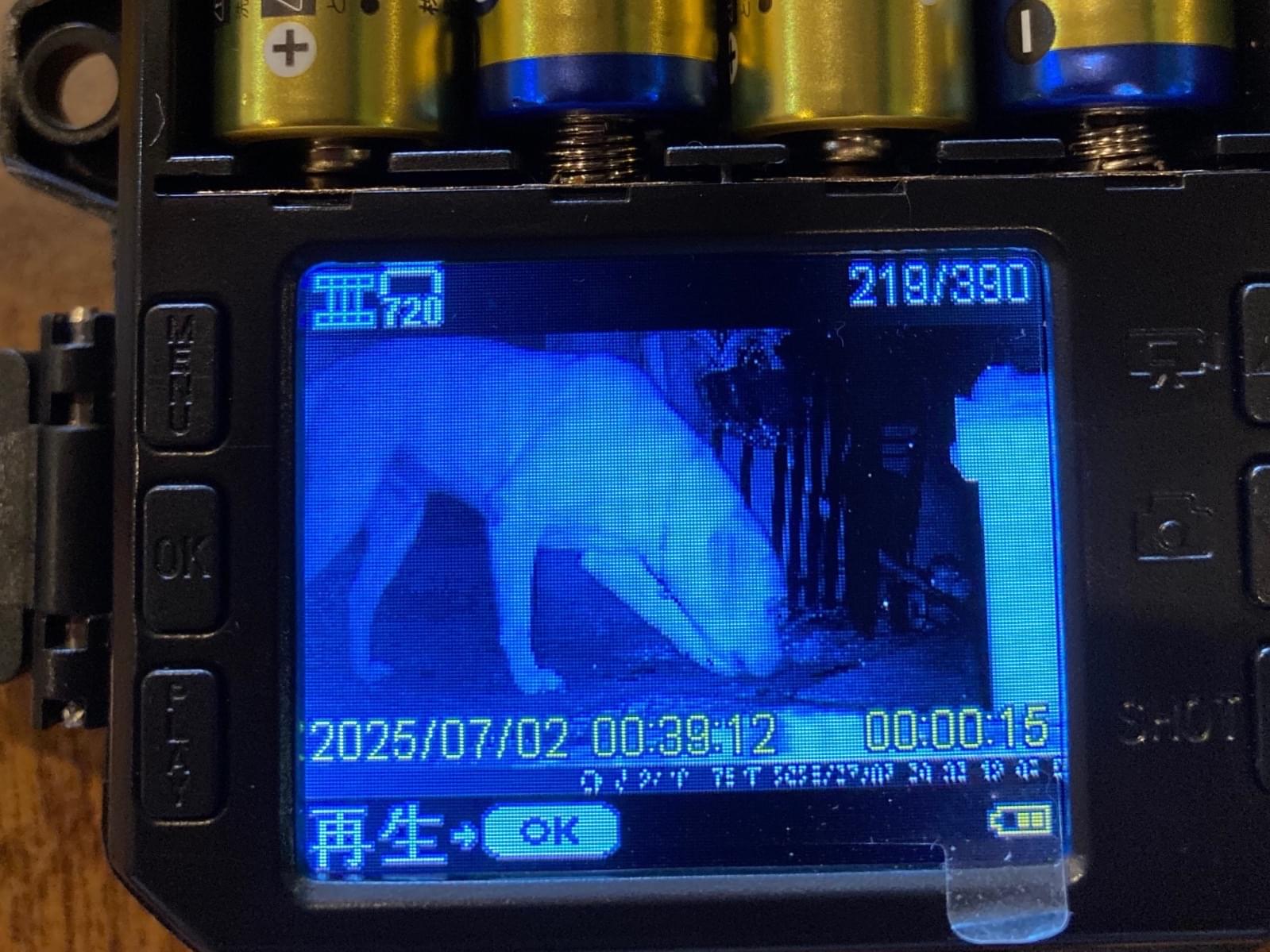 迷子猫を監視カメラで見ていたら、犬が写っており、ご近所では見かけない犬だそうです