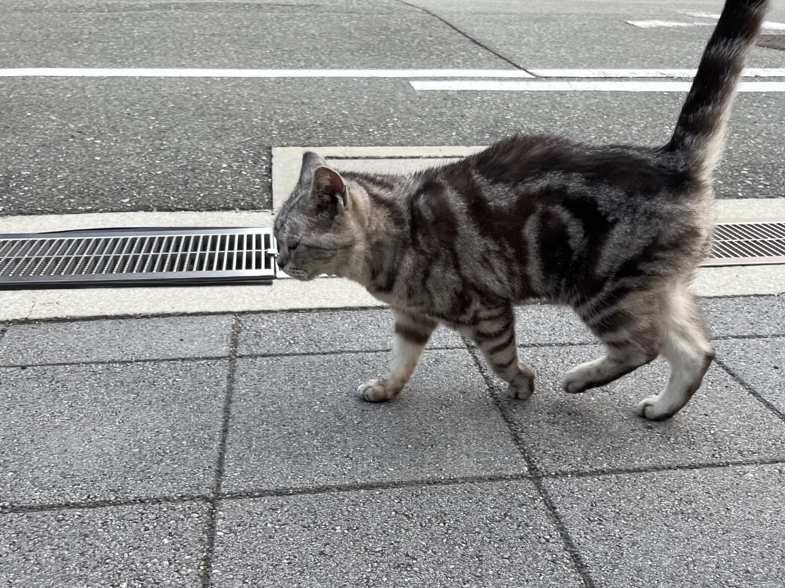 人慣れしたアメリカンショートヘアの迷い猫を目撃しました。とても人懐っこいので飼い猫ぽいです。かなり痩せてるので、迷子になってから1週間は経ってるかと。心当たりのある方はご連絡ください