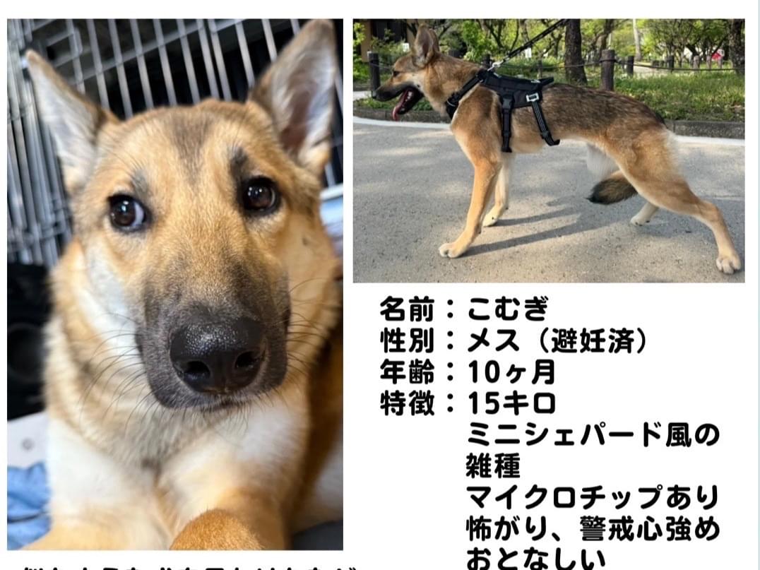 中型犬 手脚が長く大型犬に見える 怖がり臆病 警戒心強め シッポが長い 逃走時 黒のハーネス付き 当時 体重15キロ 鼻黒 立ち耳 大人しく 噛んだりしません マイクロチップあり 避妊済み