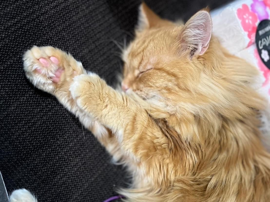 明るい茶色 長毛猫 ピンクの首輪 AirTag付き
