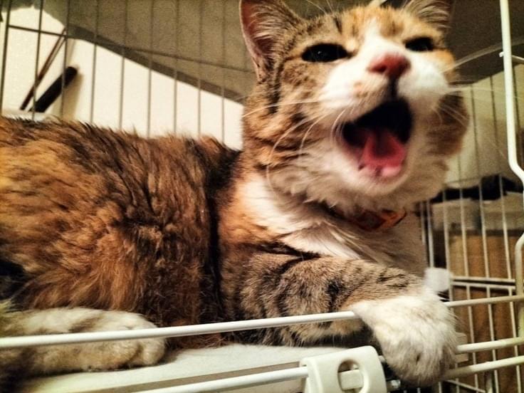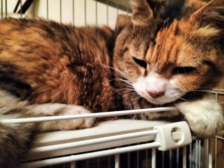 歯が余りなく、残っている歯も歯石だらけで、歯の状態からは年齢はわからないそうで、そんなに若くはないそうです。ケージの高い段には上がれるので、10歳以下だと推測されます。
