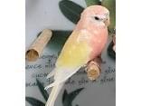 体長 約20cm、羽が黄色、お腹・頭・肩がピンク、オデコに少し青色(色が剥げている可能性あり)