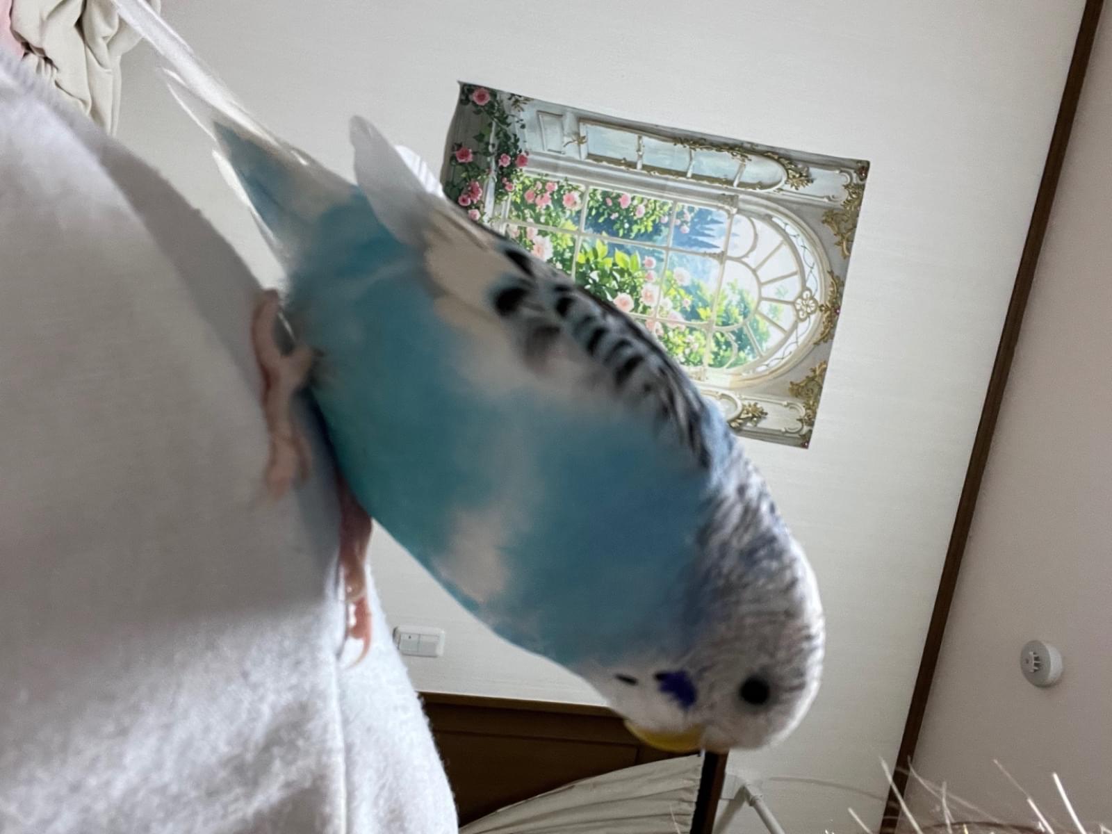 セキセイインコ 7ヶ月の女の子が、洗濯物をベランダに干した数秒の知らない間に外に出てしまいました。