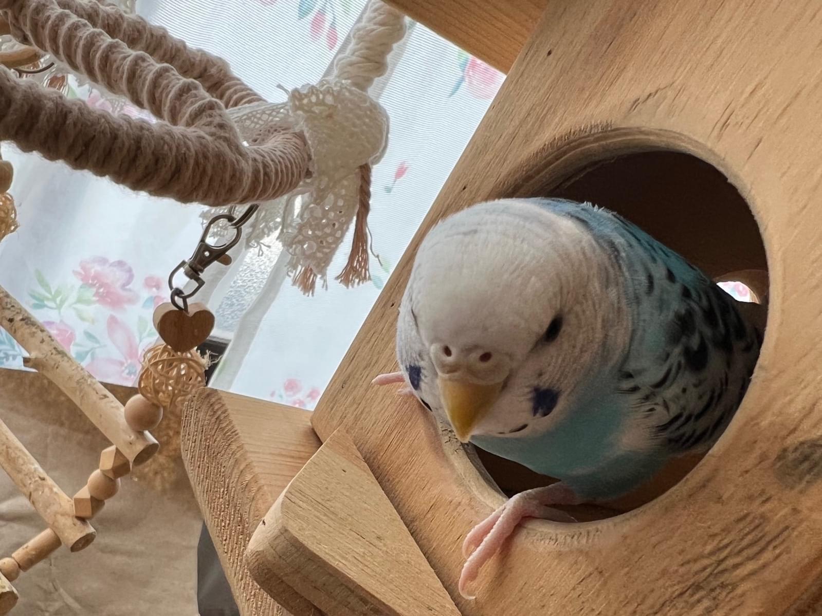 体が水色のセキセイインコ 7ヶ月の女の子を探しています。羽に黒い模様があります。