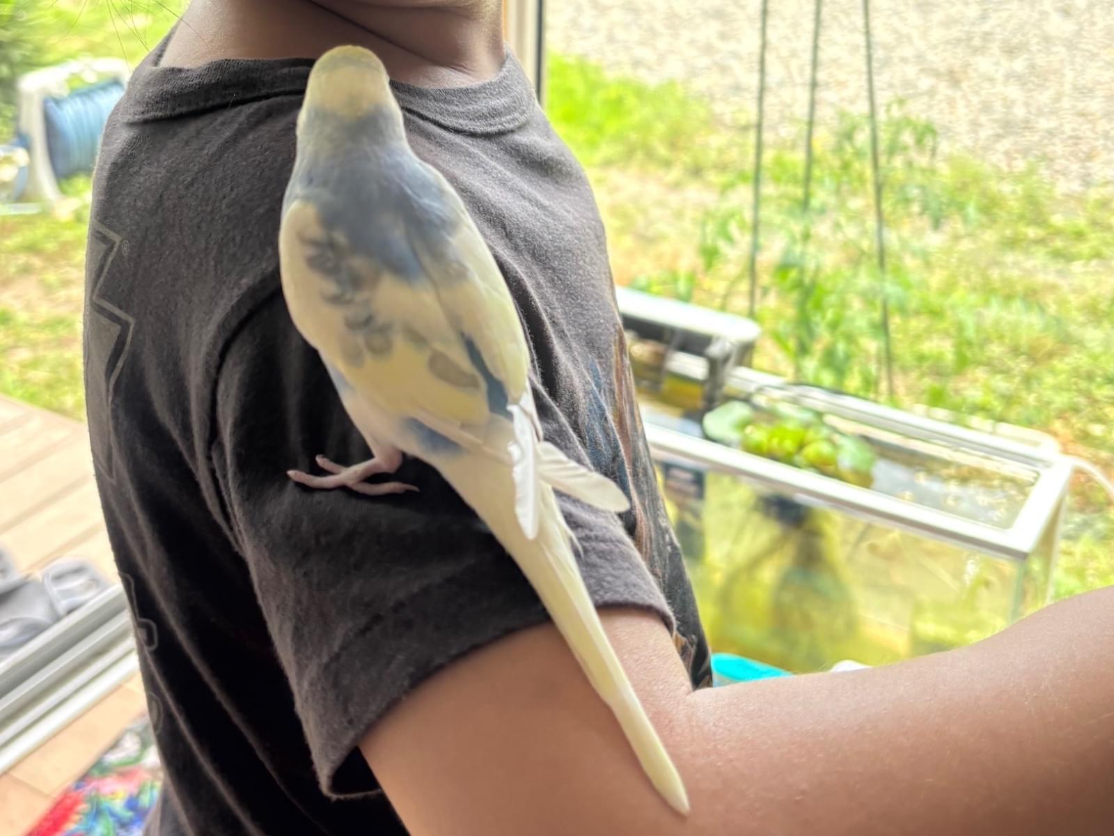 「よっちゃん」と呼ぶと肩に乗ってきます。