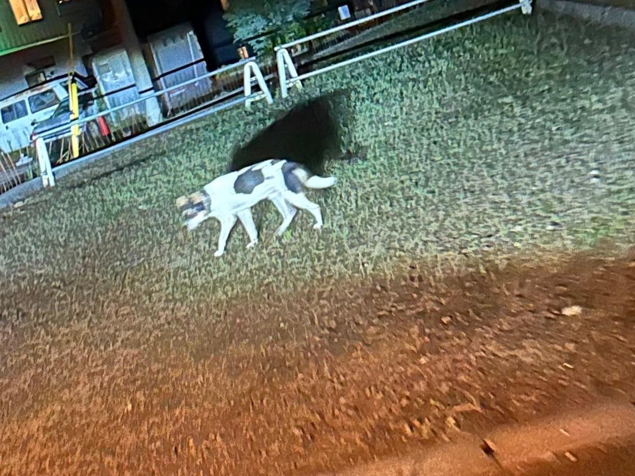 道路でなにかを嗅いでいたので、危ないと思い山側へ追いやりました