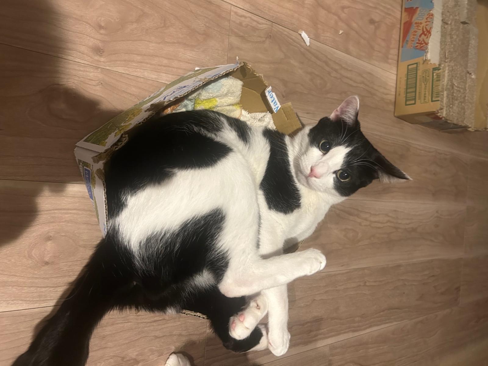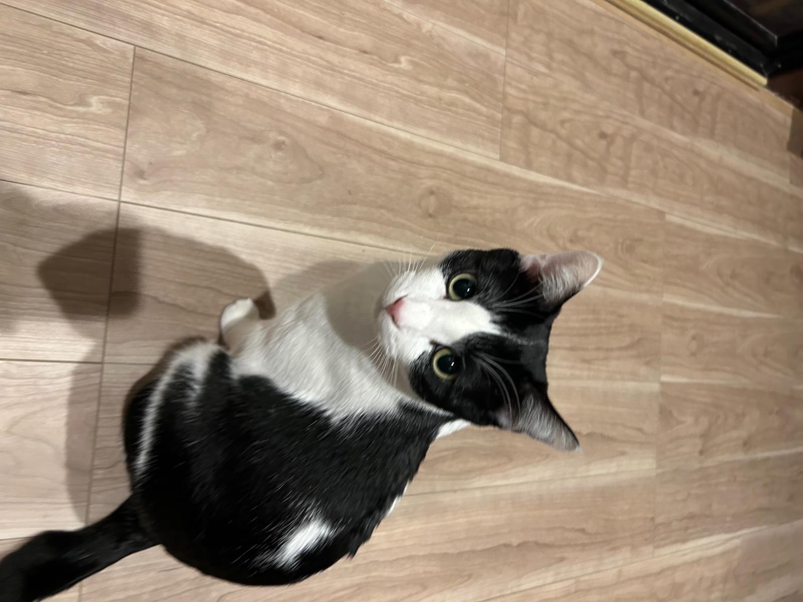 昨日の夜脱走しました。臆病で怖がり人にあまり懐いていません。白黒のハチワレで筋肉質。体重は5キロ無いくらいです。模様はまばらに黒が入っています。爪は伸びてて長いです。まだ2歳なのでよく動き、飛びます。