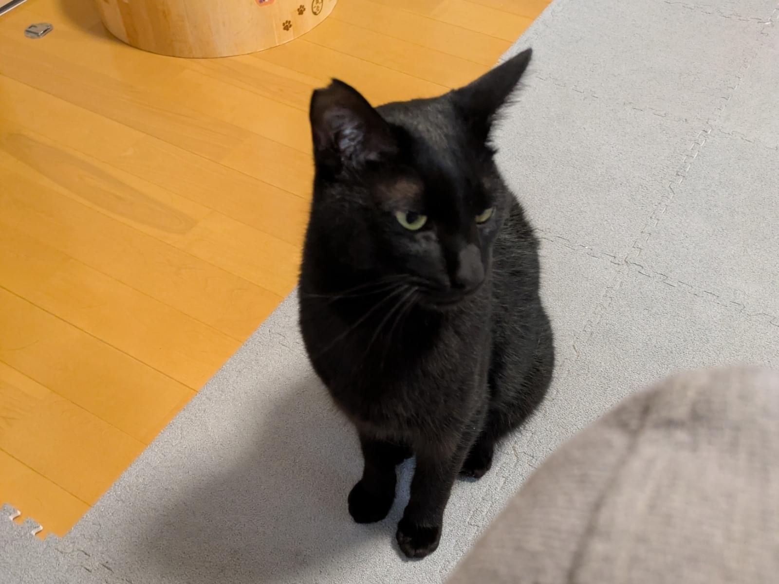 【特徴】…黒猫で痩せ型の筋肉質です。顔もほっそりしています。