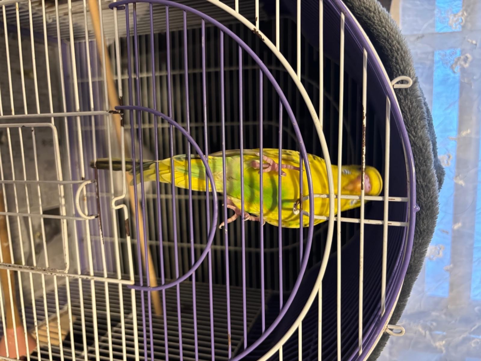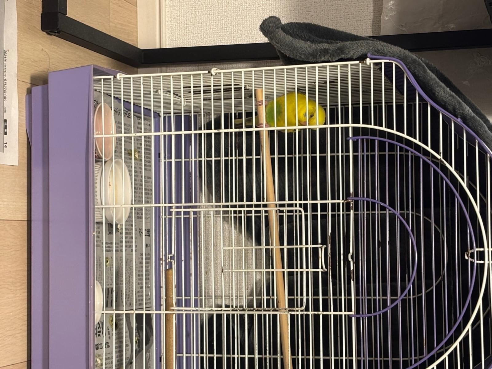 幼い黄色いセキセイインコを保護しました