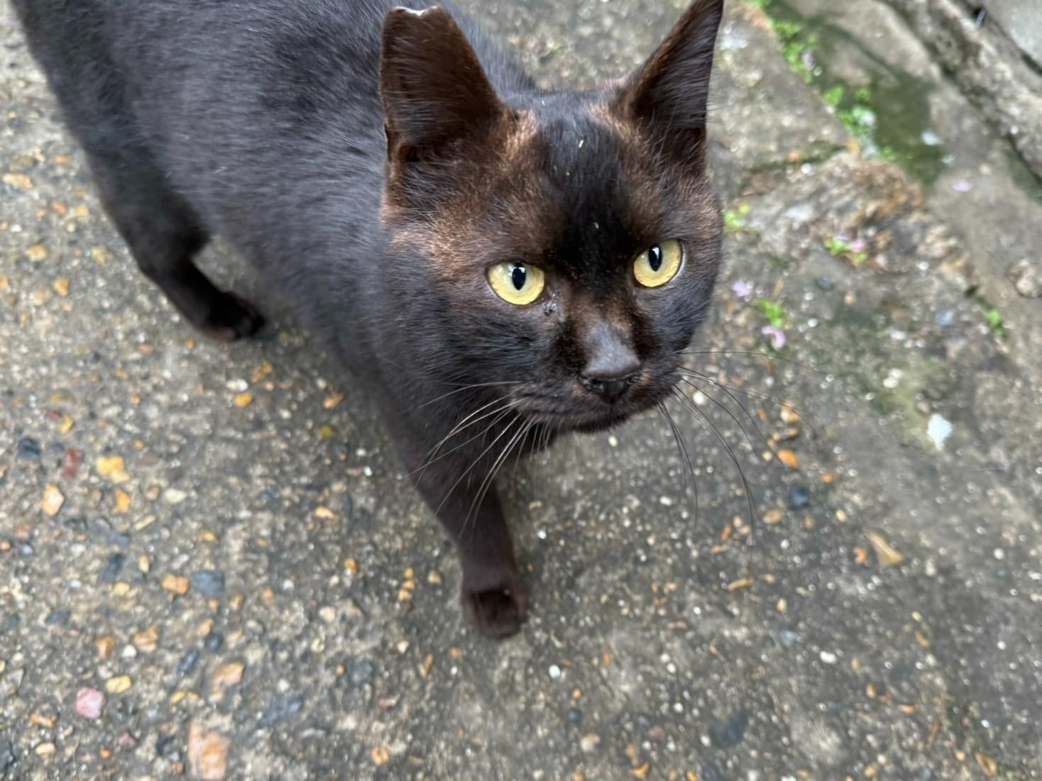 とてもひとなつこい黒猫のため、どなたが保護してくださっているかもしれません。