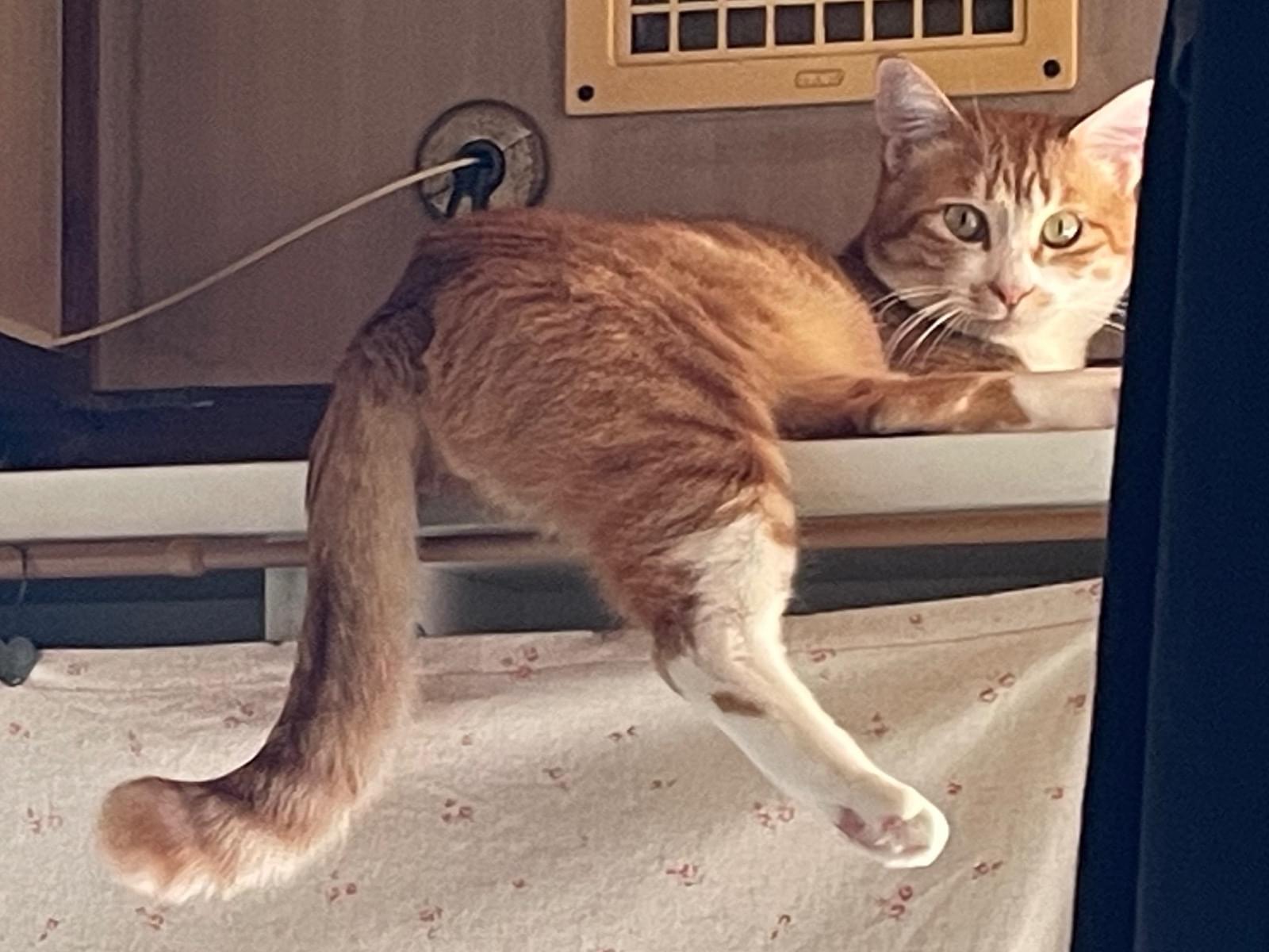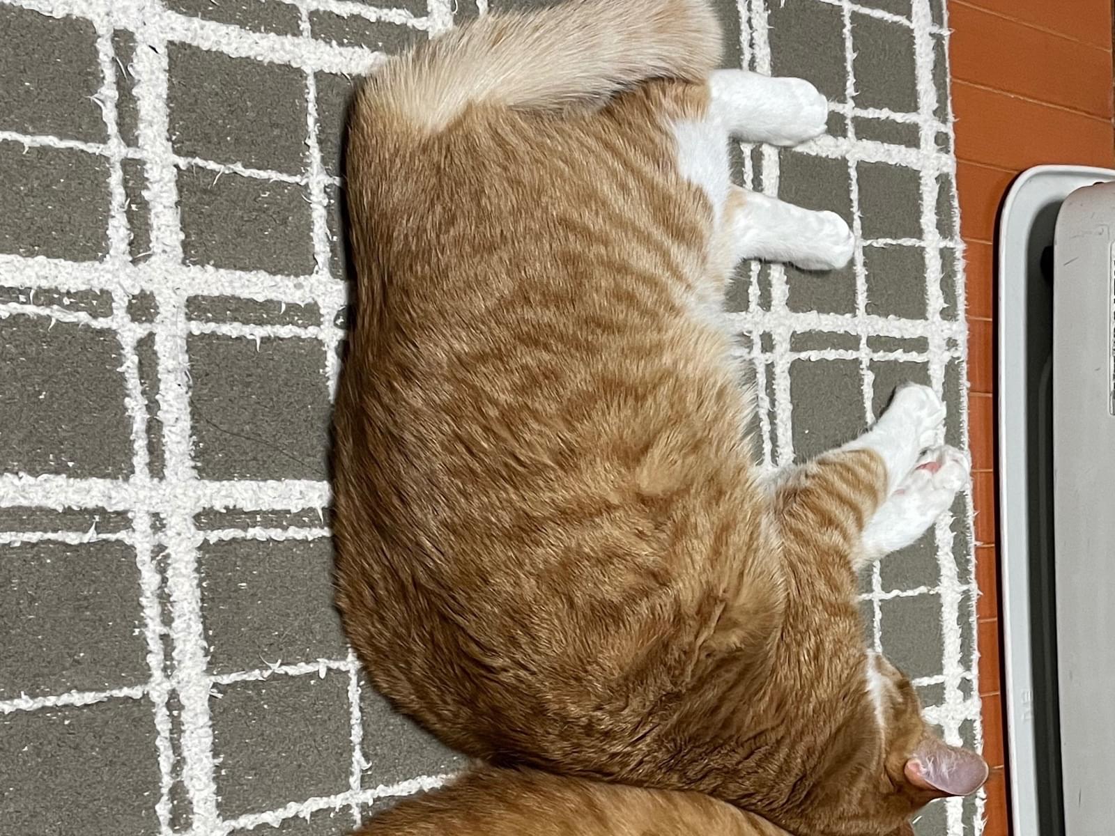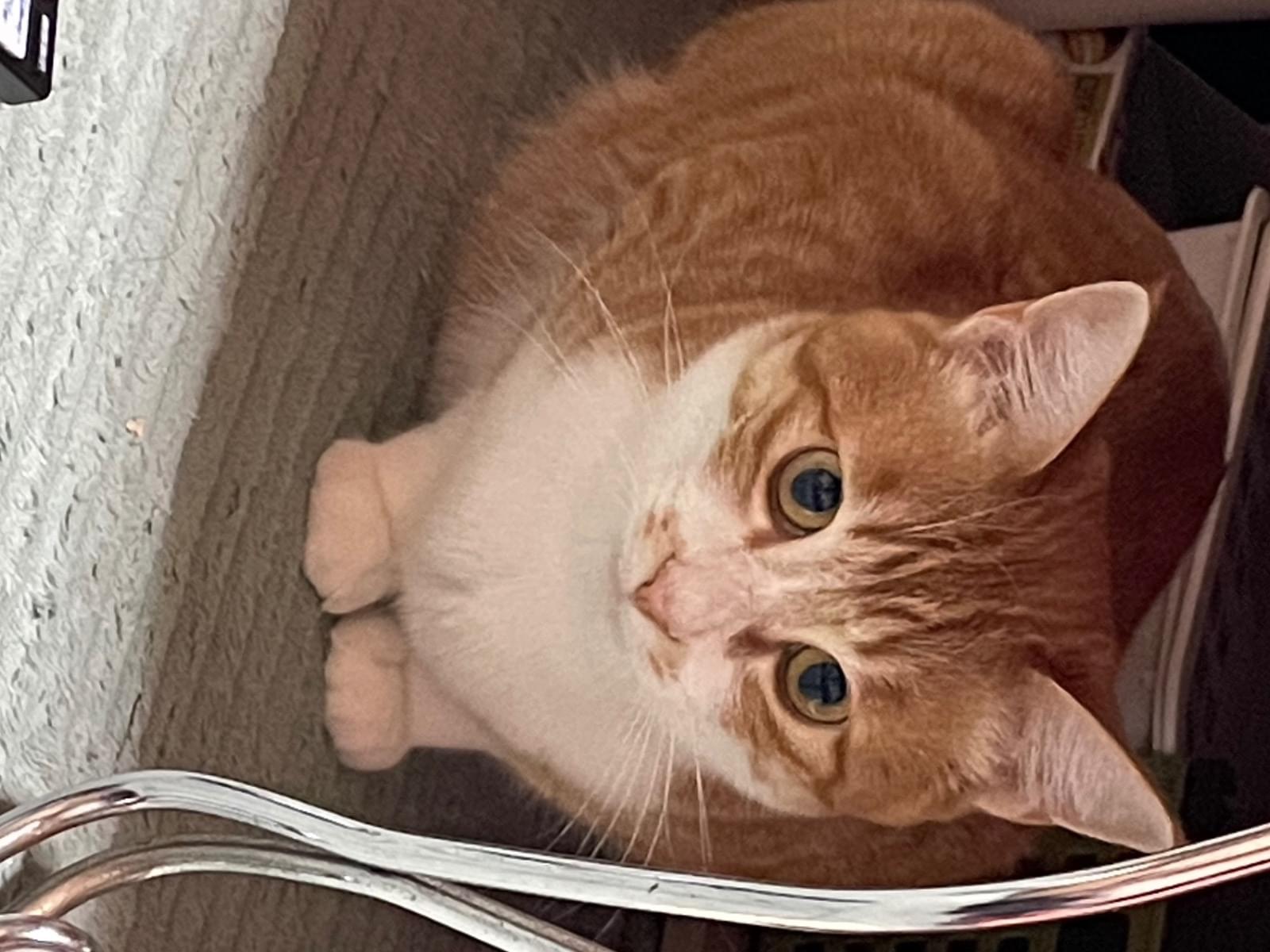茶白のオス、前足と後ろ足は靴下履いてるような白、