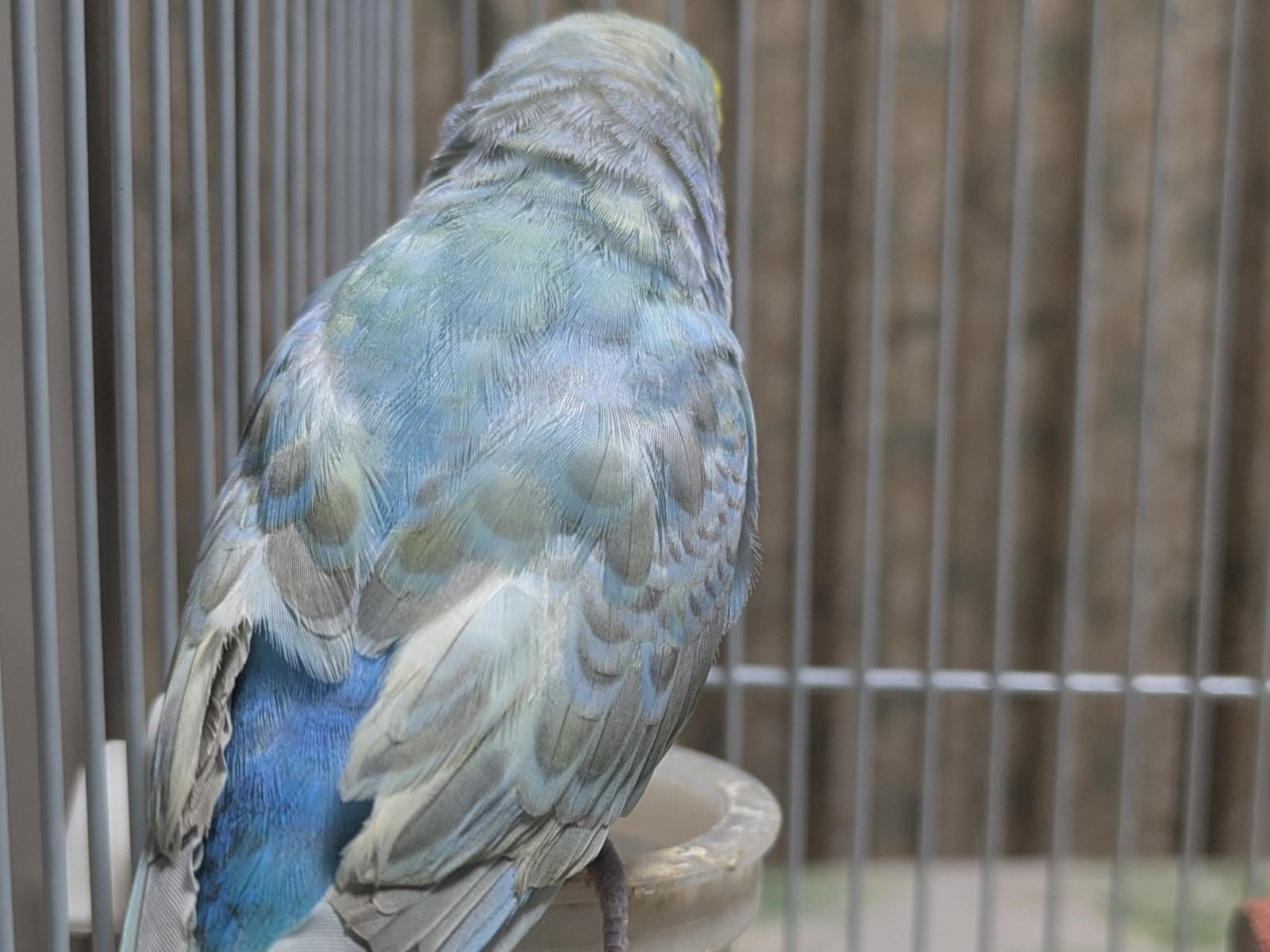 黄色い頭が特徴の青いセキセイインコを探しています。後ろ姿はグレーがかった青色です。人の頭や肩、手にとまりますが、手で捕まえることは嫌がります。テンションがあがると名前や住所、あいさつ等、おしゃべりします。