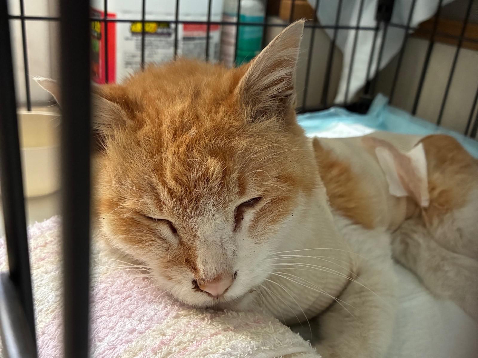 自宅の庭に怪我した猫が現れたので保護しました。
