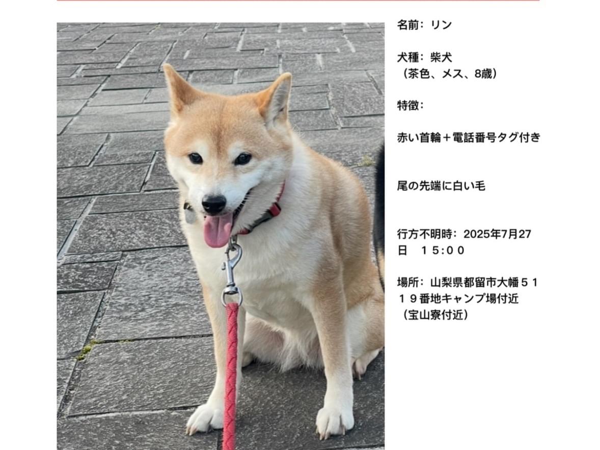 ホーム迷子犬山梨県視覚障害のある茶色柴…視覚障害のある茶色柴犬管理編集するポスター掲載終了最終更新日時:2025/07/29 17:46写真情報用件迷子名前リン性別メス年齢8場所山梨県 都留市大幡5119番地発生日時2025年7月27日(日)飼い主青山説明都留市大幡5119のキャンプ場から山林の方に逃げちゃいました。赤色首輪をつけてます、見つけた方は08041933331まで至急ご連絡をお願いします。連絡先URL未設定掲示板情報交換のための掲示板です。ユーザーからの情報提供、オーナーからの連絡などにご利用下さいませ。コメントを書き込む山梨県県道719号あんず返信0件2025/08/10 10:29