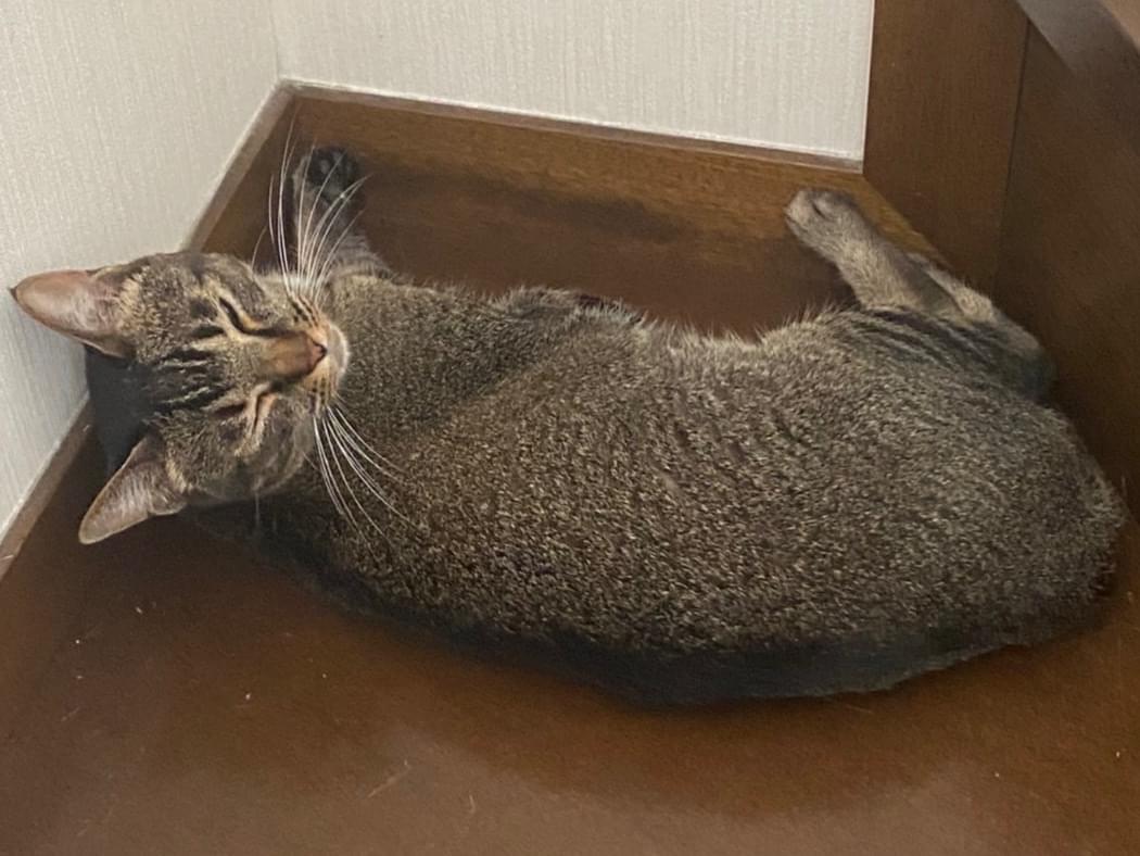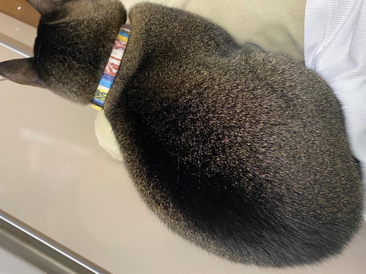 顔や足には縞模様がありますが、背中などには縞模様がありません。女の子で小さめです。