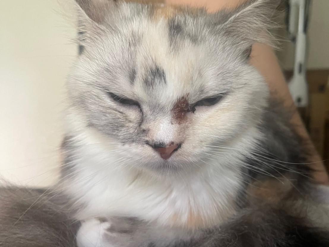 鼻の頭 左目の目頭付近に 持病の為膿が出て居て 傷がある