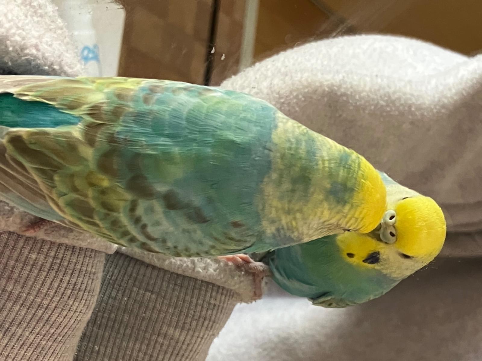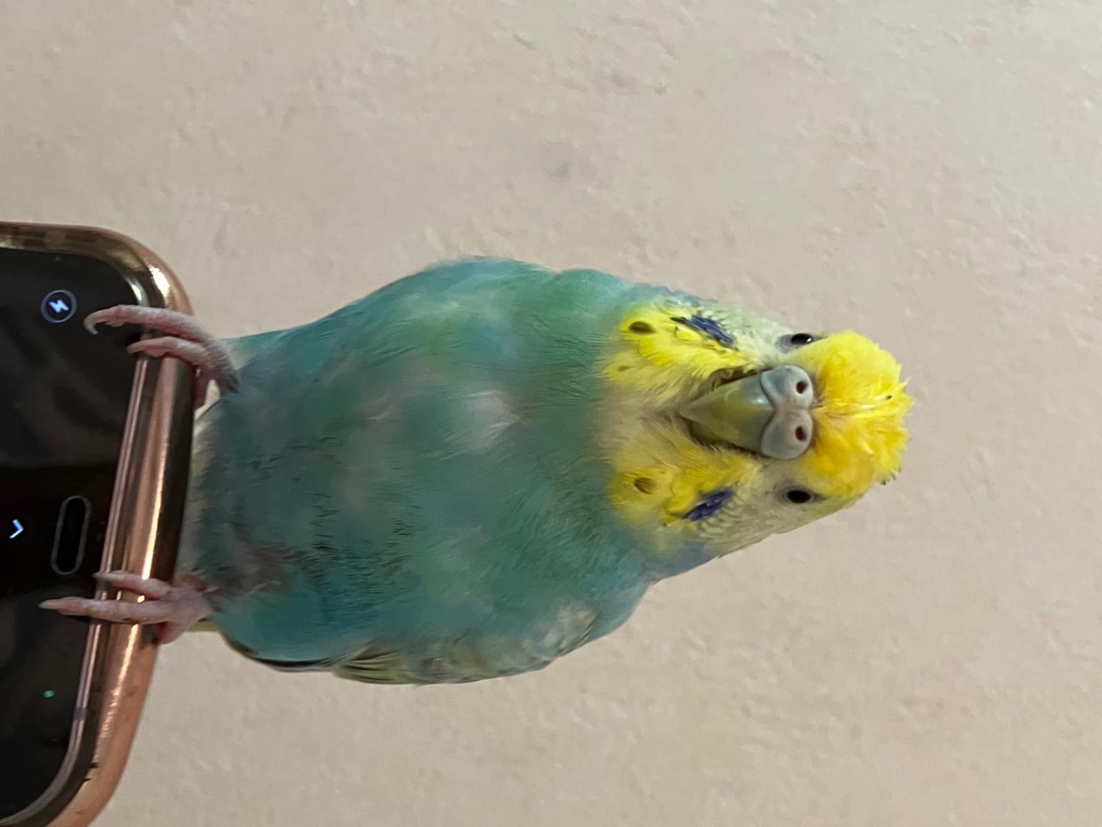 顔周りが黄色く、下半身が水色のセキセイインコを探しています