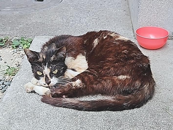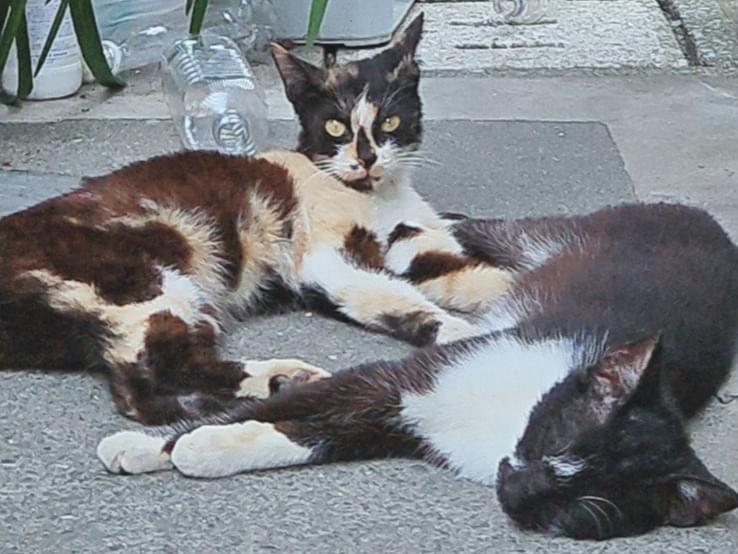 三毛猫(メス)と黒白柄(オス)の猫を保護しています。
