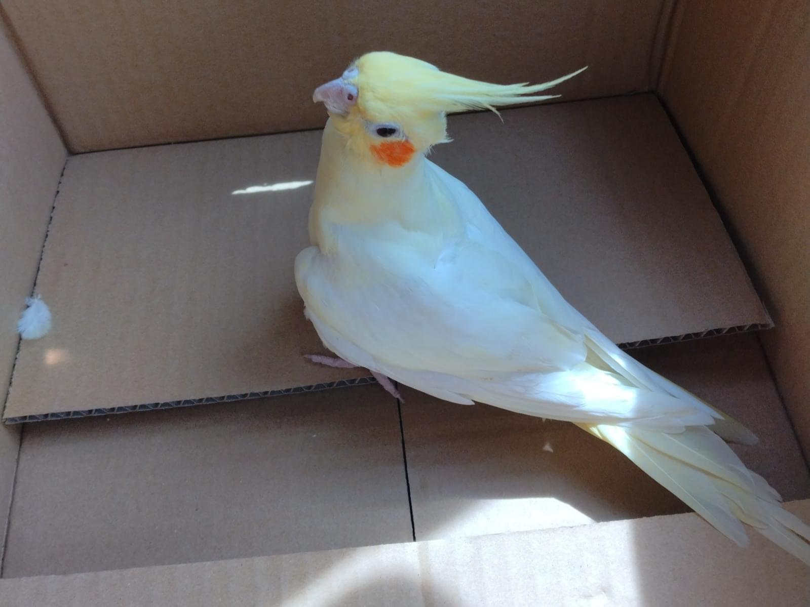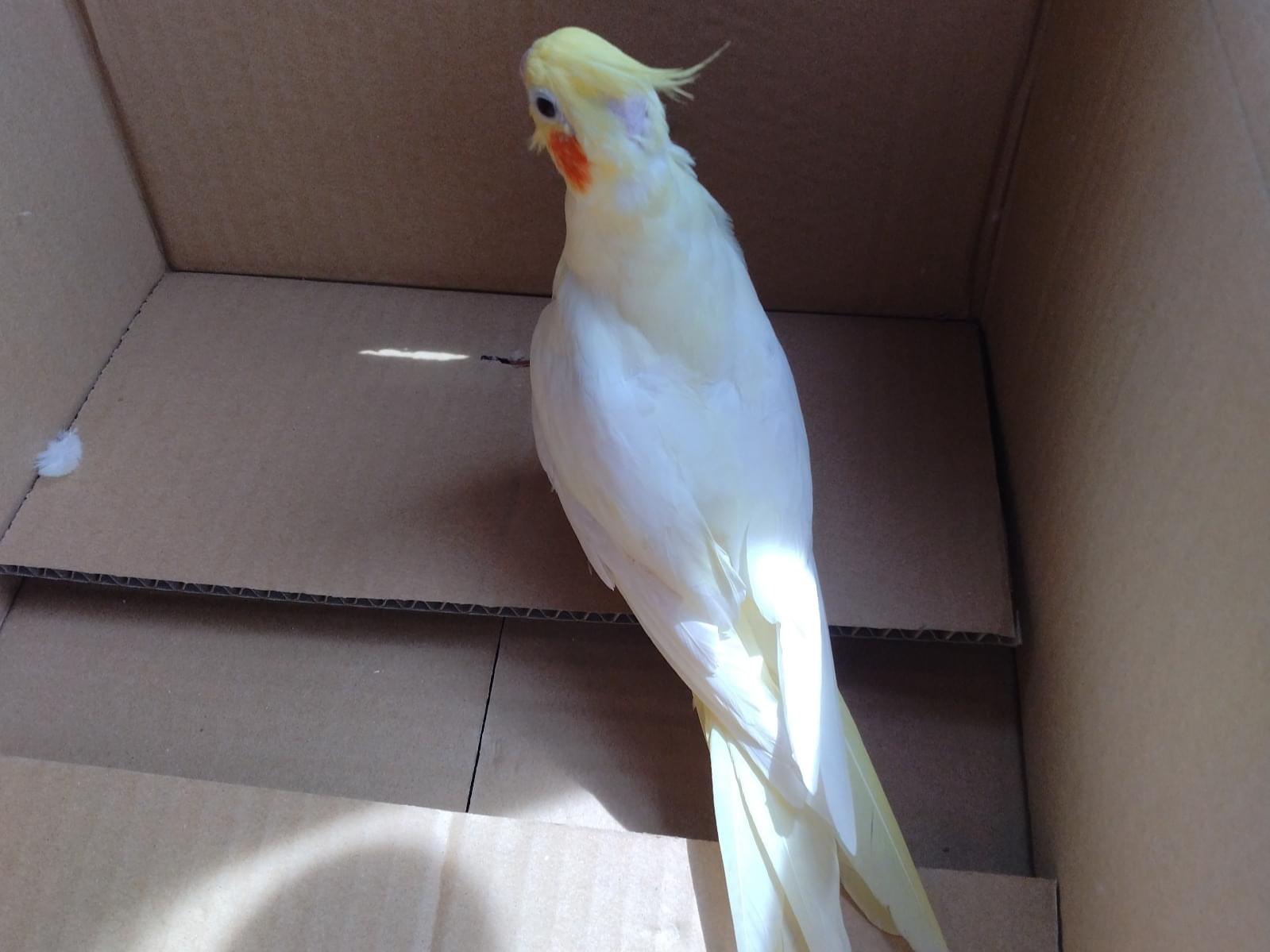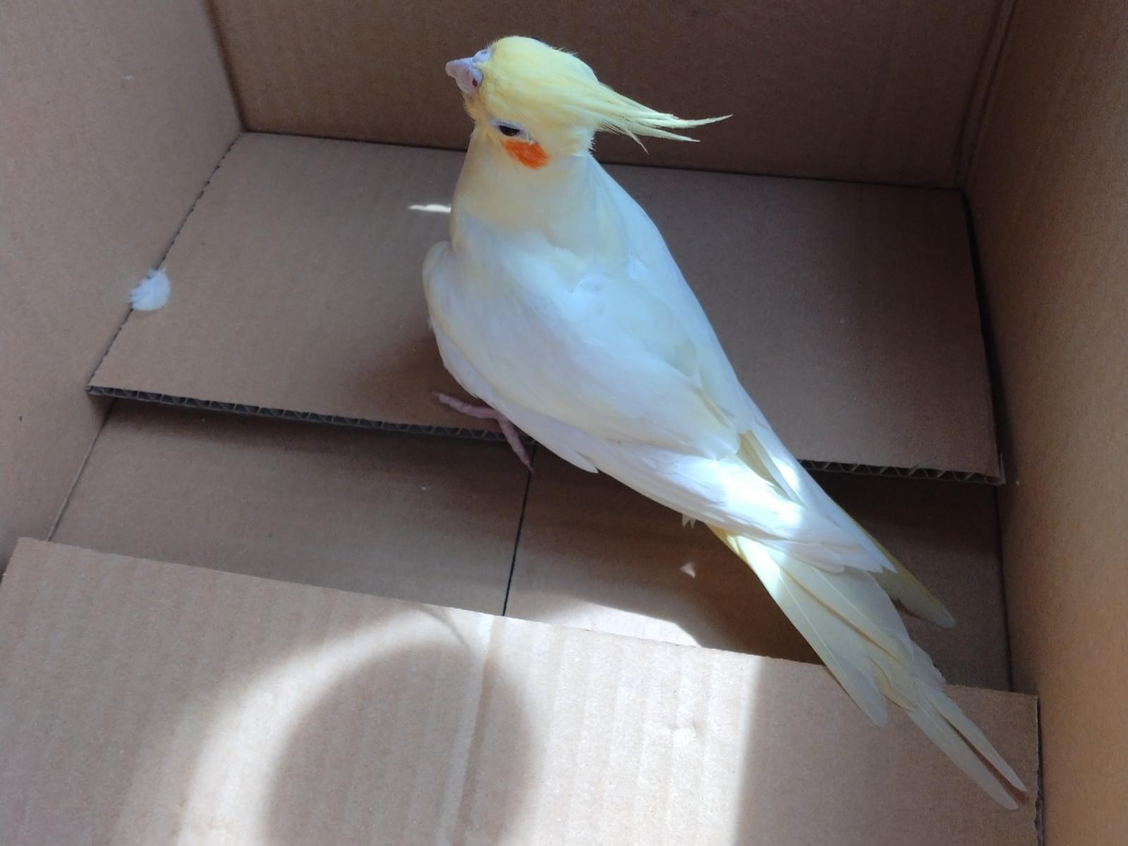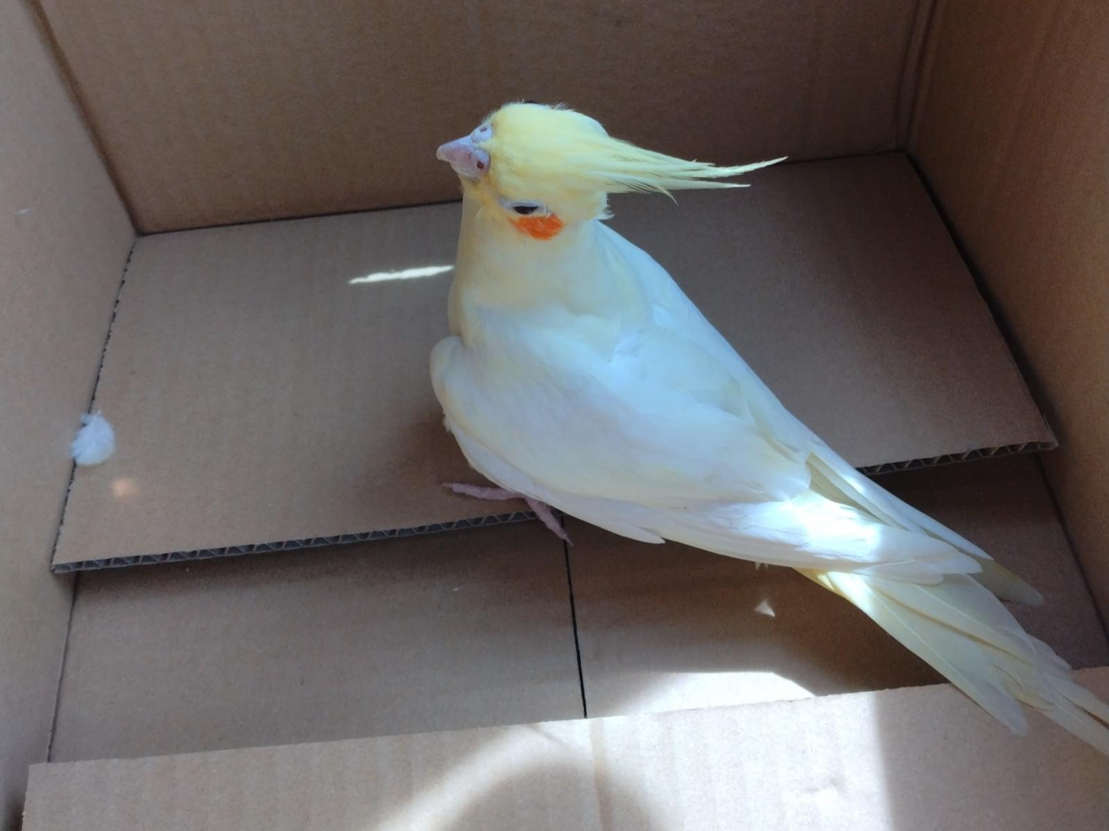 今日の正午12時頃、名古屋市中村区宮塚町の宮塚公園付近でオカメインコを保護しました。