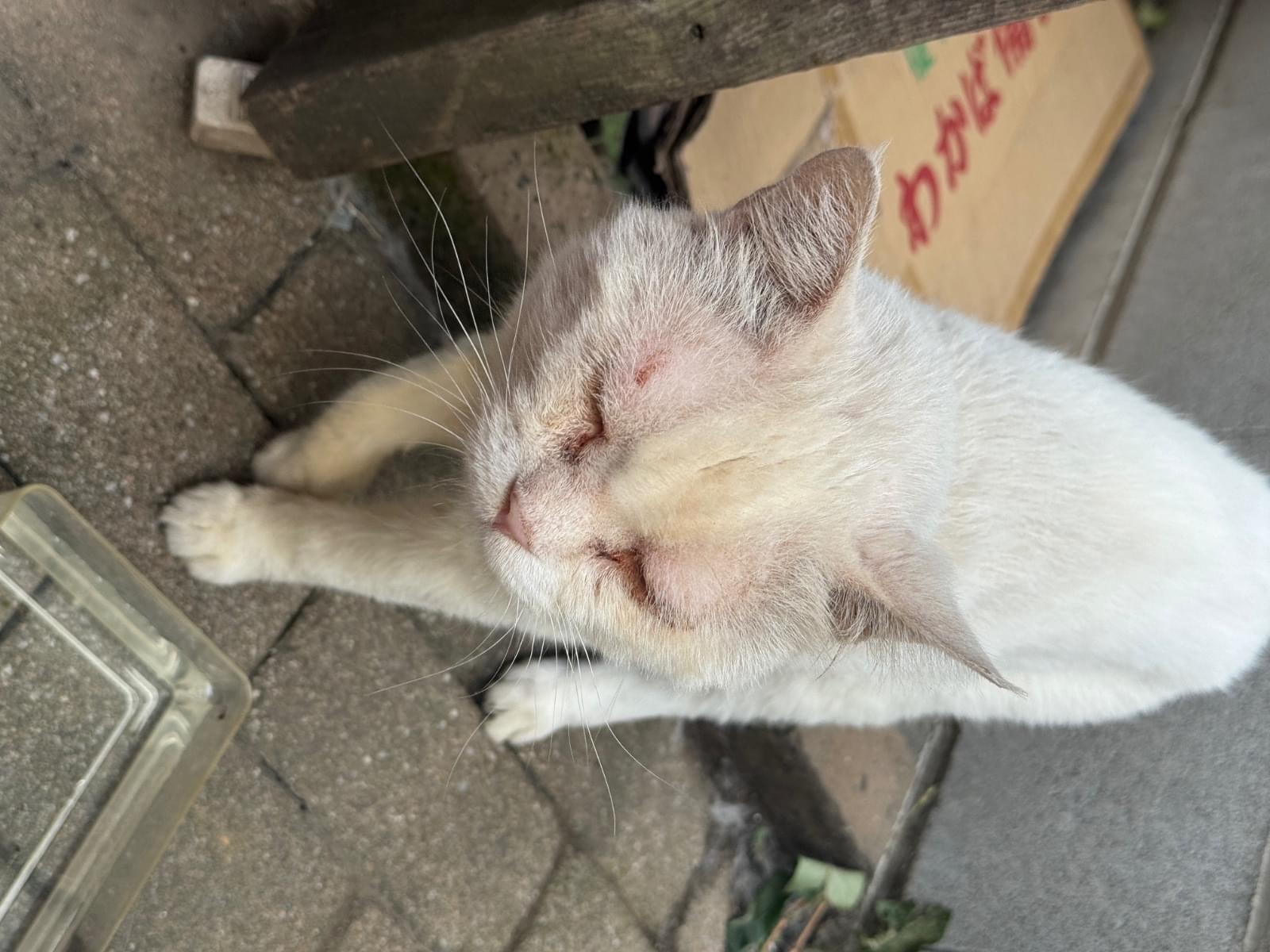 8/8時点で右前脚ケガ(歩きにくそう)、目の周りが炎症?