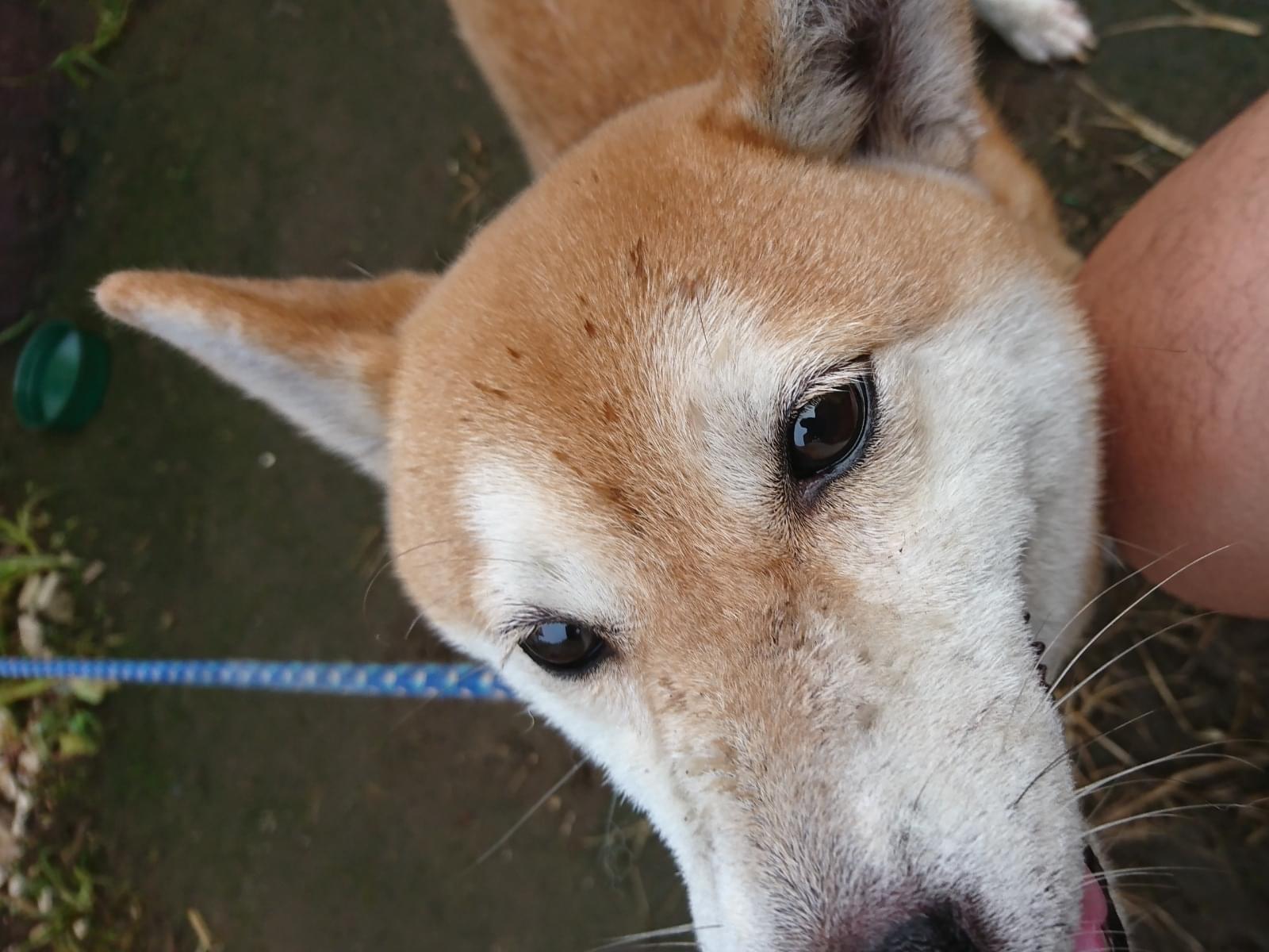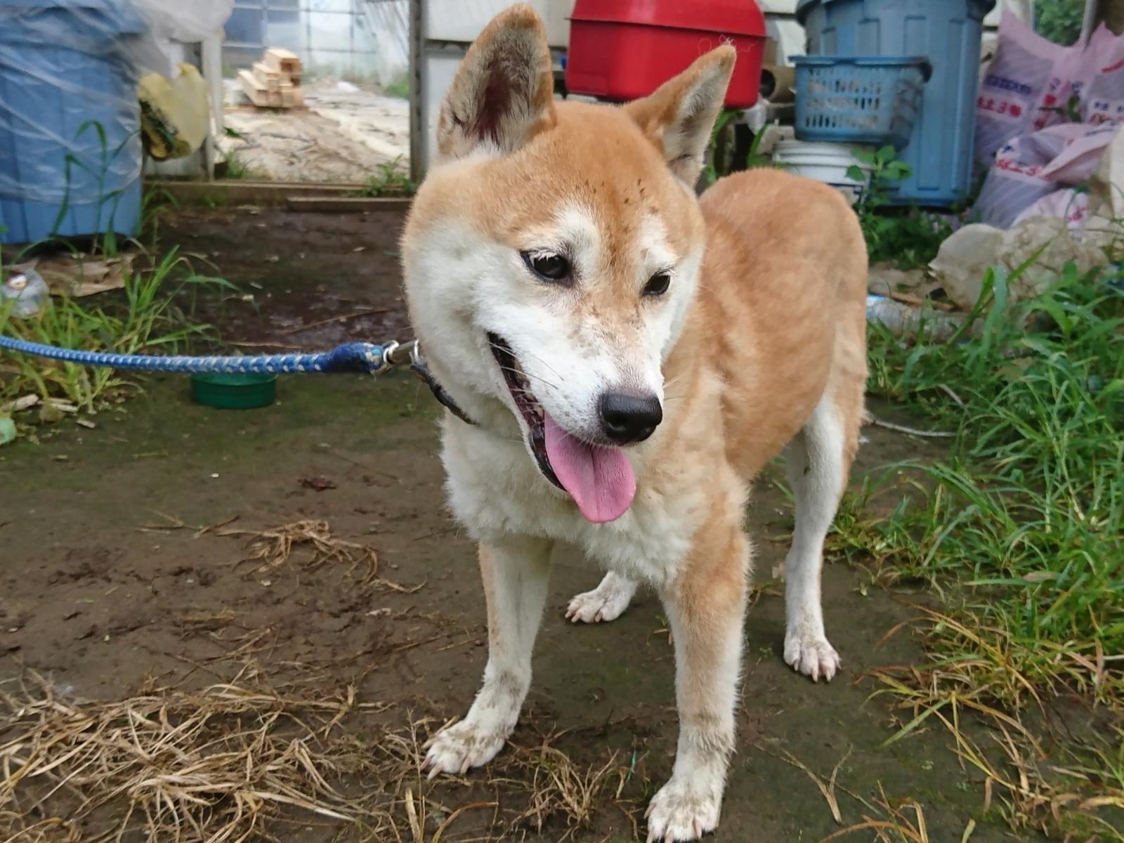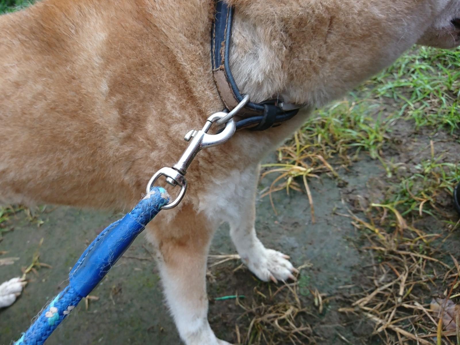 色あせた青系の首輪をしていますが、他に何も付いていないので狂犬病予防摂取をしてあるかは不明です。