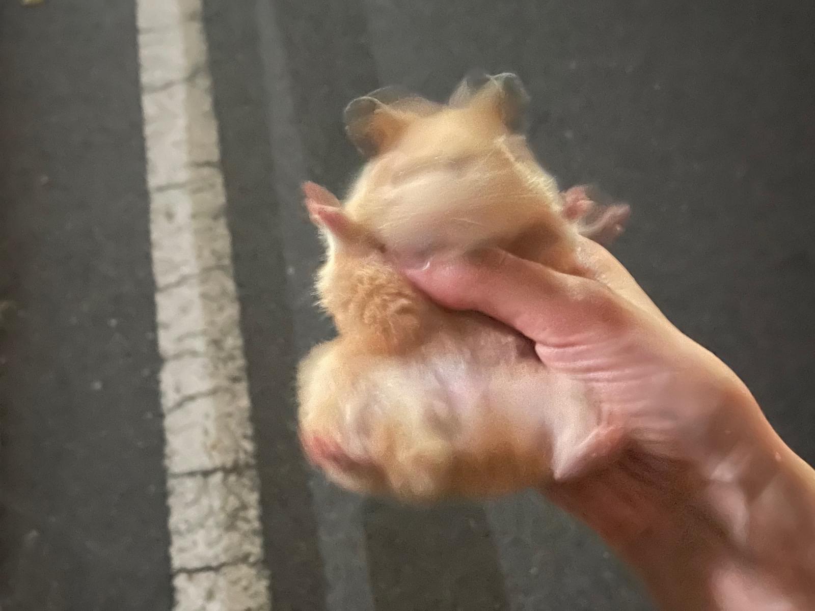 井の頭公園駅からまっすぐ行った通りで道を横断するキンクマハムスターを保護しました。